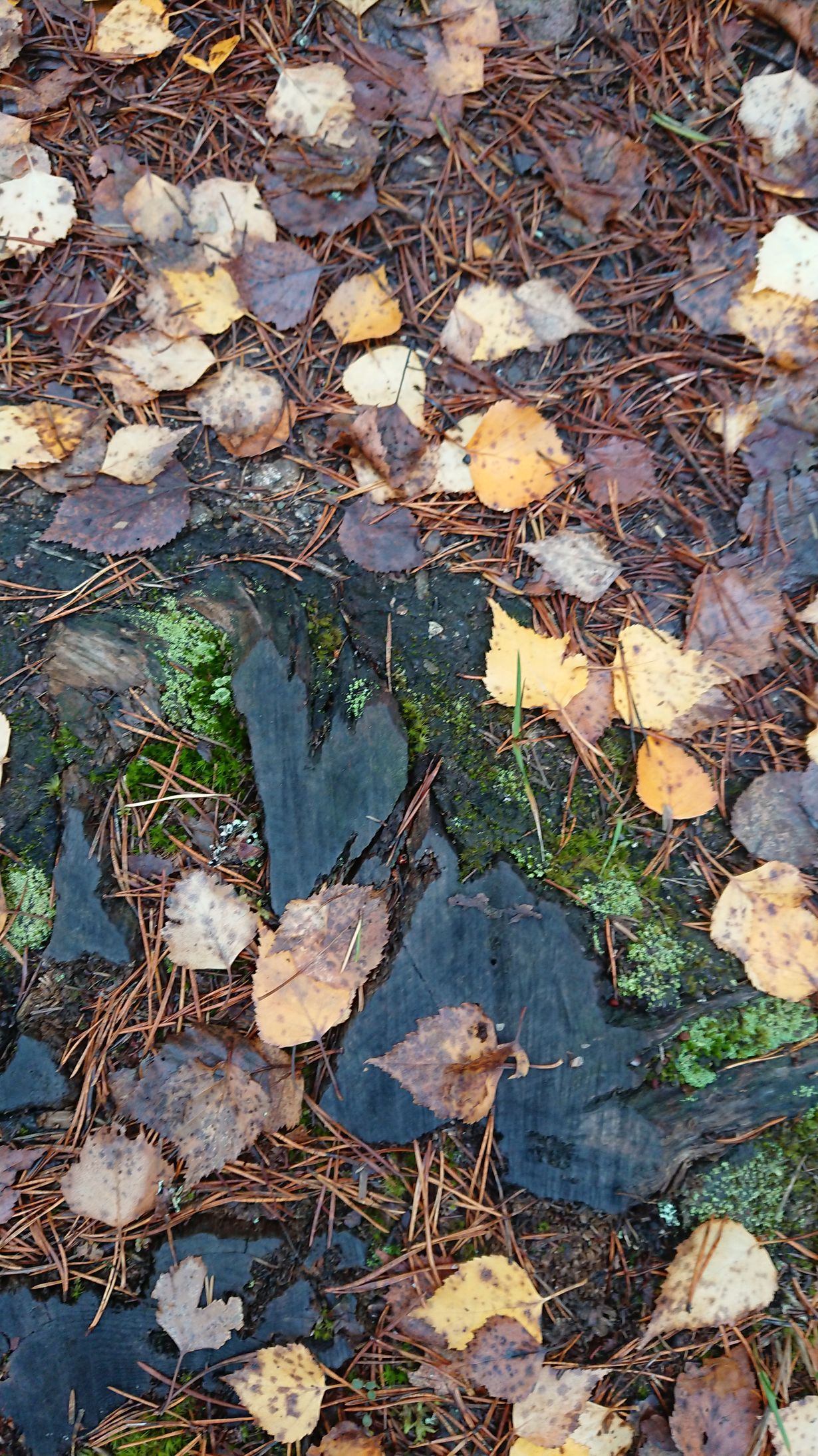 Retkeillessä yksin kolmatta päivää sitä kaipaa välillä yhteyttä toisiin, sydänvihjeitä joku voima oli jättänyt matkalle tän lisäksi myös syksyinen lehtien sydämen muodoissa.