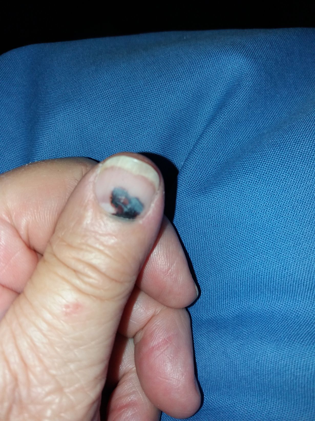 Peukalo jäi oven väliin 9.9. Mustunut osa kynnen alla on nykyisin melkolailla sydämen muotoinen. Sukulaistyttö kehoitti osallistumaan tähän kuvakisaan.