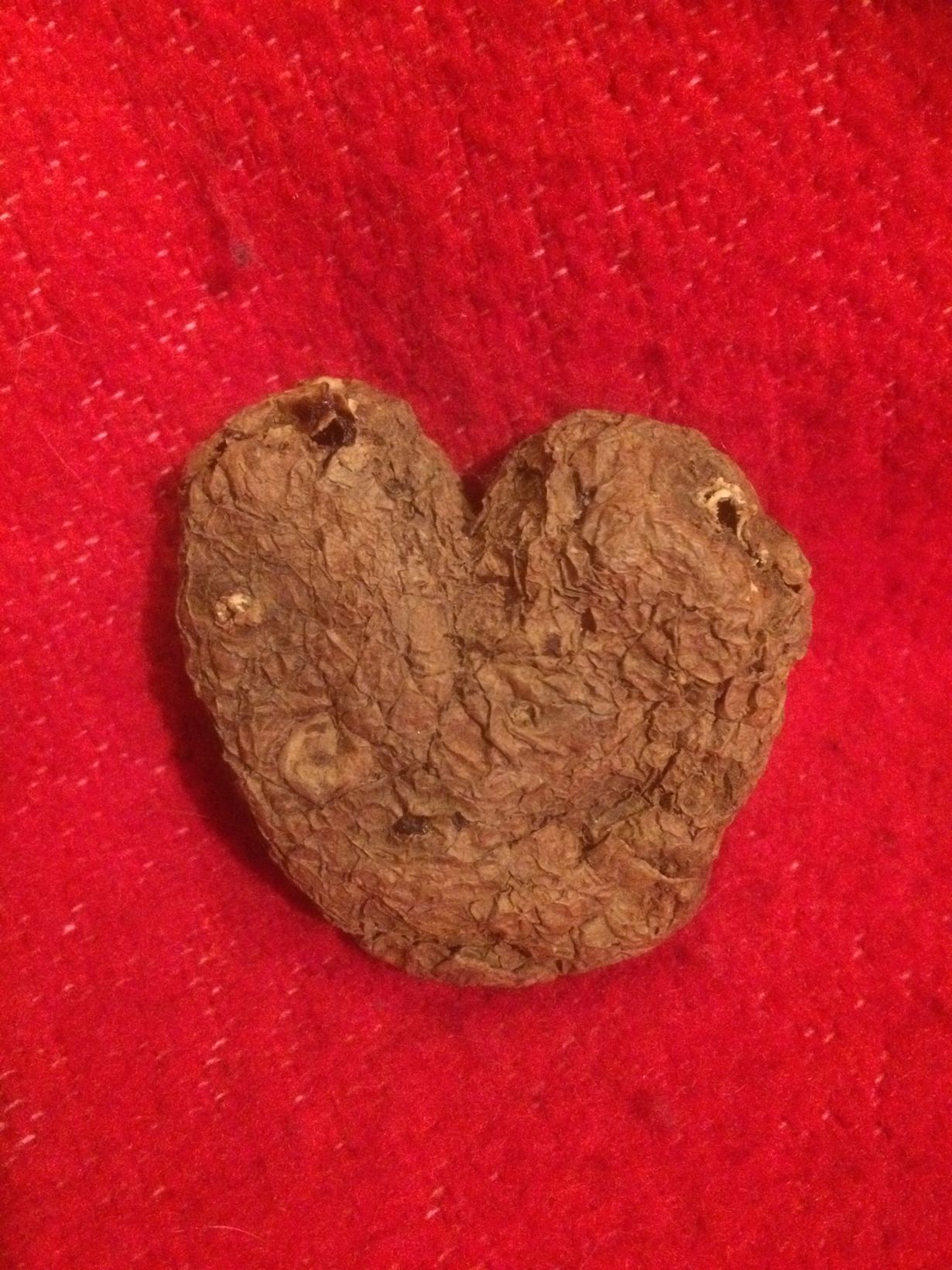 Tämä on yli 7 vuotta vanha kuivunut sydän peruna. Se löytyi peruna pussista juuri kun olin ihastunut nykyiseen miesystävääni se on minun onnen peruna! Sitä ei voi heittää pois :)