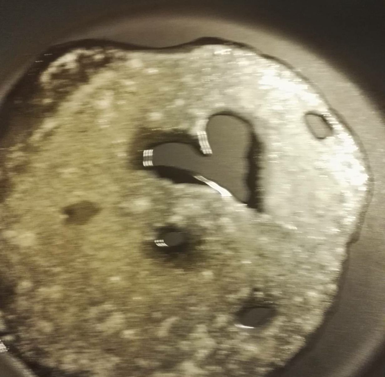 Lorautin paistinpannulle juoksevaa margariinia ja hetken päästä pannulle muodostui sydän. Rakkaudella perheelle ruokaa❤