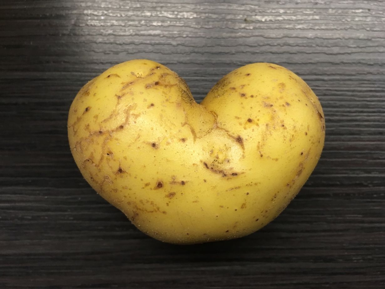 Olin tekemässä perunamuusia ja pussista löytyi näin suloinen peruna. Eihän sitä raaskinut kuoria, vaan jäi pöydälle keräämän katseita. Kyseinen peruna pääsi välittömästi myös someen ihailtavaksi.