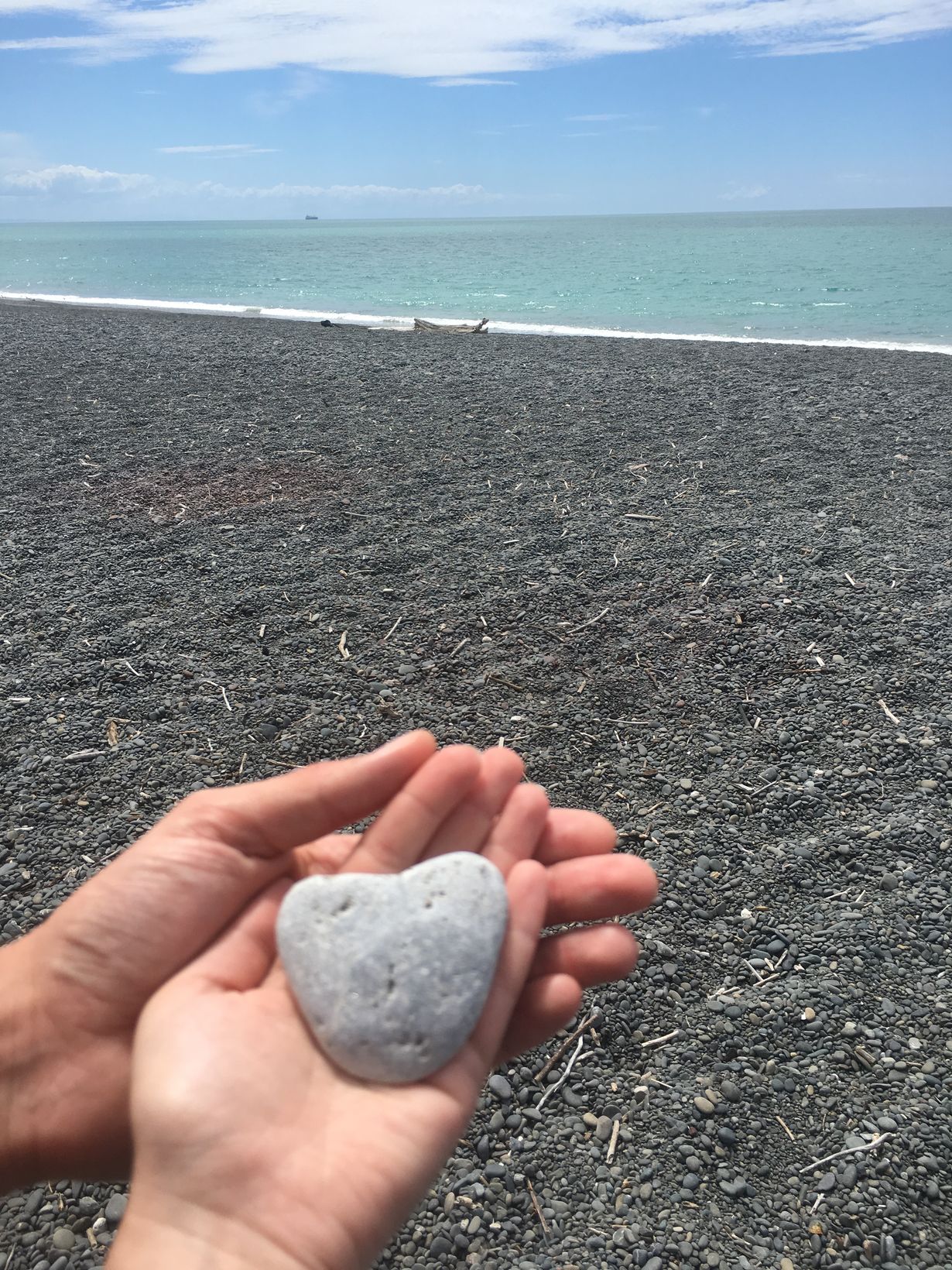 Häämatkallamme Uudessa Seelannissa löysimme rannalta sydämenmuotoisen valkoisen kiven. Se oli niin kaunis ja miten sattuikaan, että juuri me se löydettiin. Sydän lähti matkamuistoksi mukaan kotiimme.