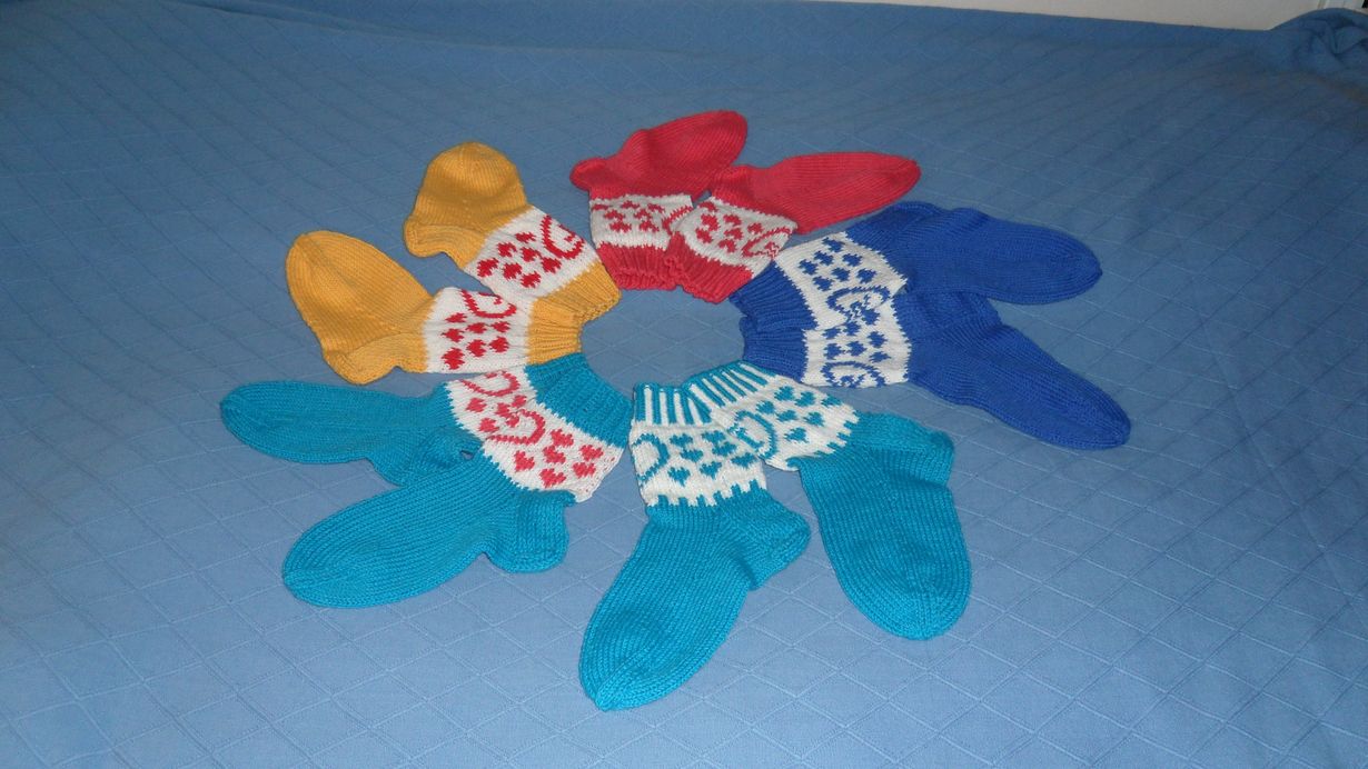 Neuloin sydänystäville sydänsukat joululahjaksi.