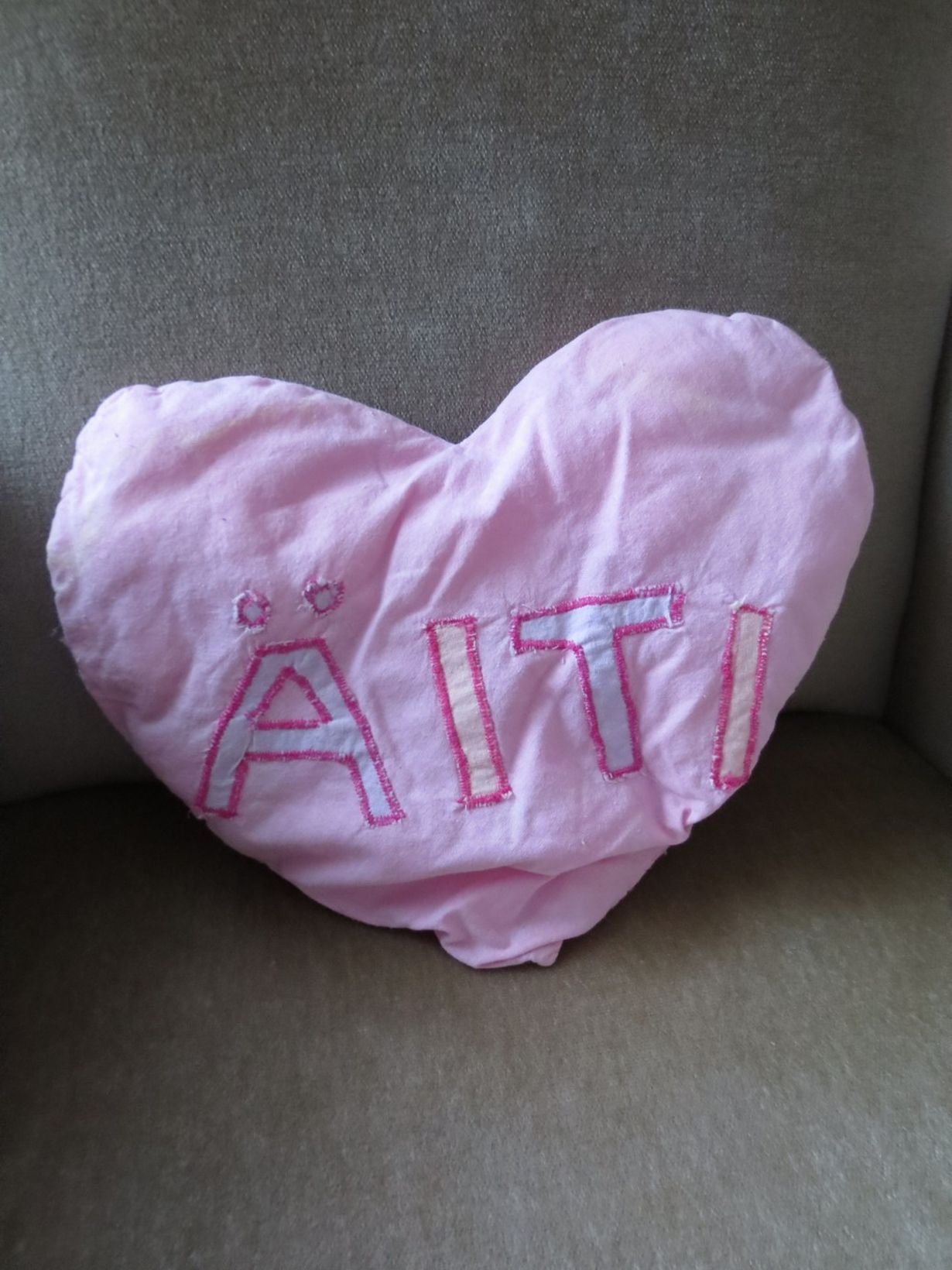 Tämä ihana arki: sohvatyyny Sydäntyyny 16.2.2013 klo 18:43 Hellyyttävä äitienpäivälahja vuosien takaa. Tarja