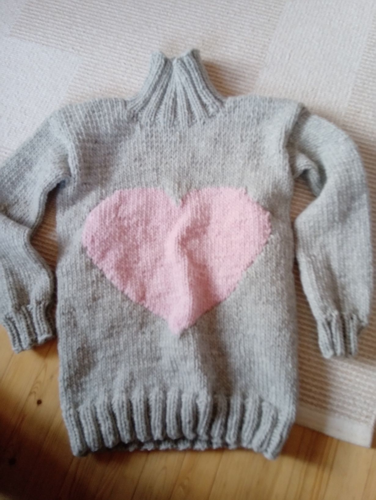 Kevättalvella 2020 tein elämäni 3 villapaidan tyttärelle jalkaleikkauksen jälkeen,kun ei päässyt liikkeelle 6 viikkoon. Sydän oli haasteellinen ilman ohjetta,mutta hyvä tuli.