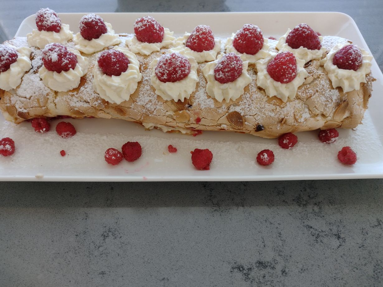 Naapuri pyysi leipomaan laktoosittoman synttärikakun. Kuohke kääretorttu rullalle ja sisällä kerma -Madcarpone vaahto ja paljon tuoreita villivattuja. Päälle samaa seosta kuin sisus ja vadelmia. Hyvin oli maistunut viimeiseen muruun