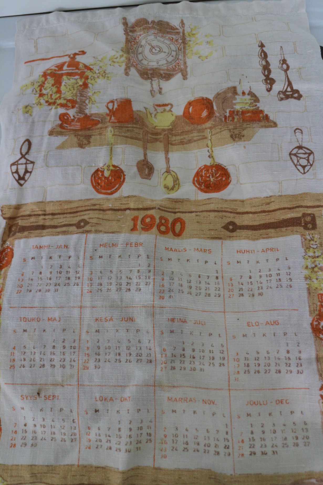 Pyyhkeen olen saanut lahjaksi ystävältäni joitakin vuosia sitten.Kovassa käytössä ollut ja jo vähän haalistunut mutta lemppari pyyhe.Sattuupa siinä olemaan vielä syntymävuoteni kalenteri että en luopuisi siitä ihan helposti juuri tuosta syystä.