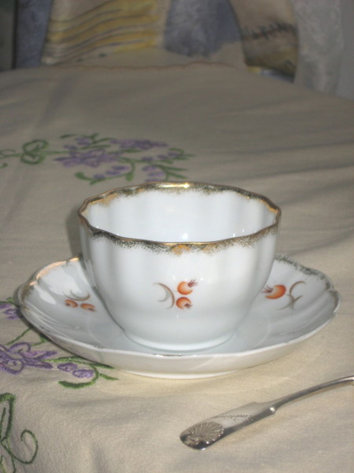 Arabian ohuessa posliinikupissa katse lepää ruusunmarjakuvioissa ja