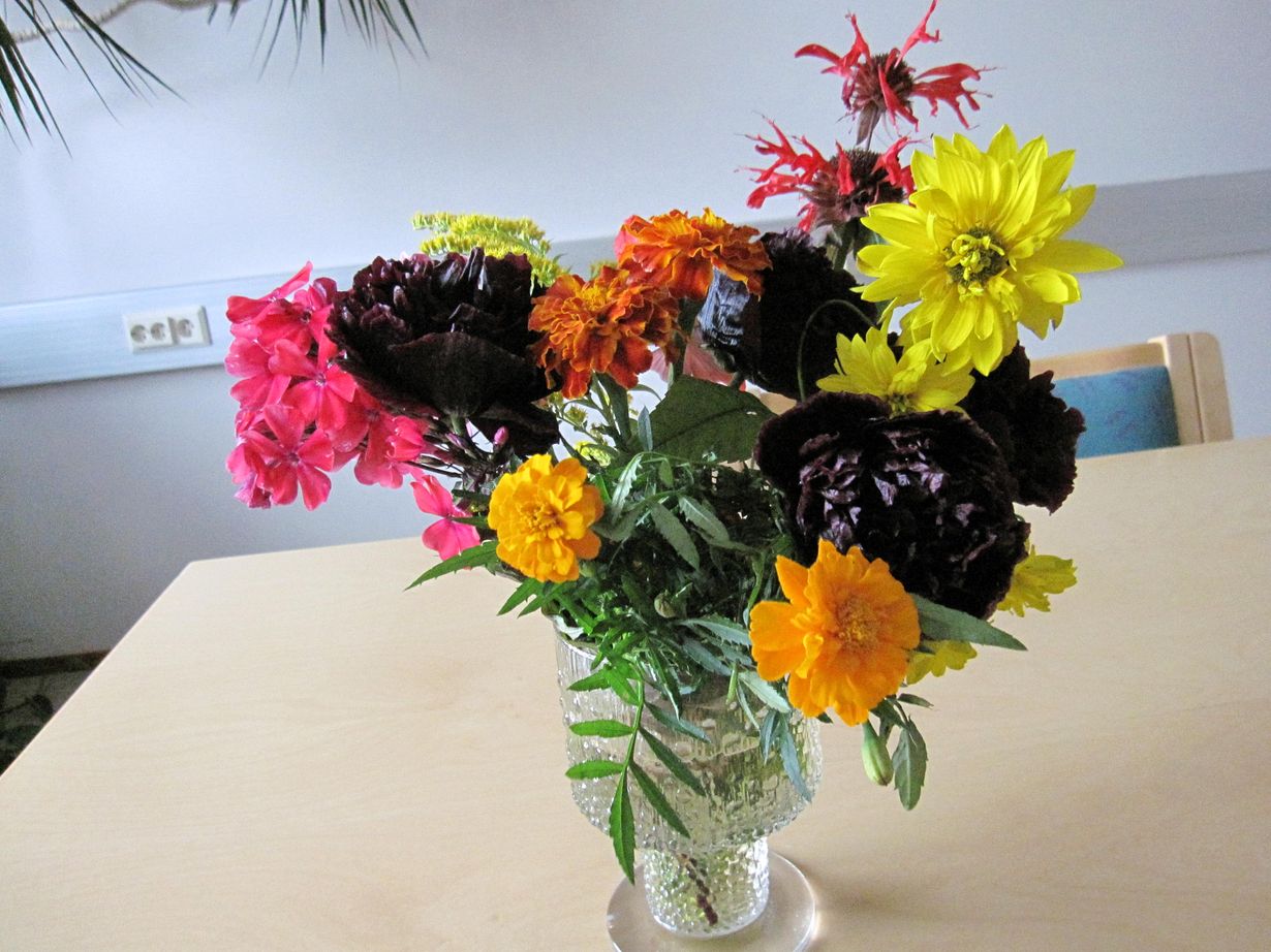 Tämä ihana arki: kukkakimppu Syyskesän värikäs kimppu 12.4.2014 klo 13:41 Oman puutarhan kukista tehty kimppu, jossa erikoisuutena tumma unikko.