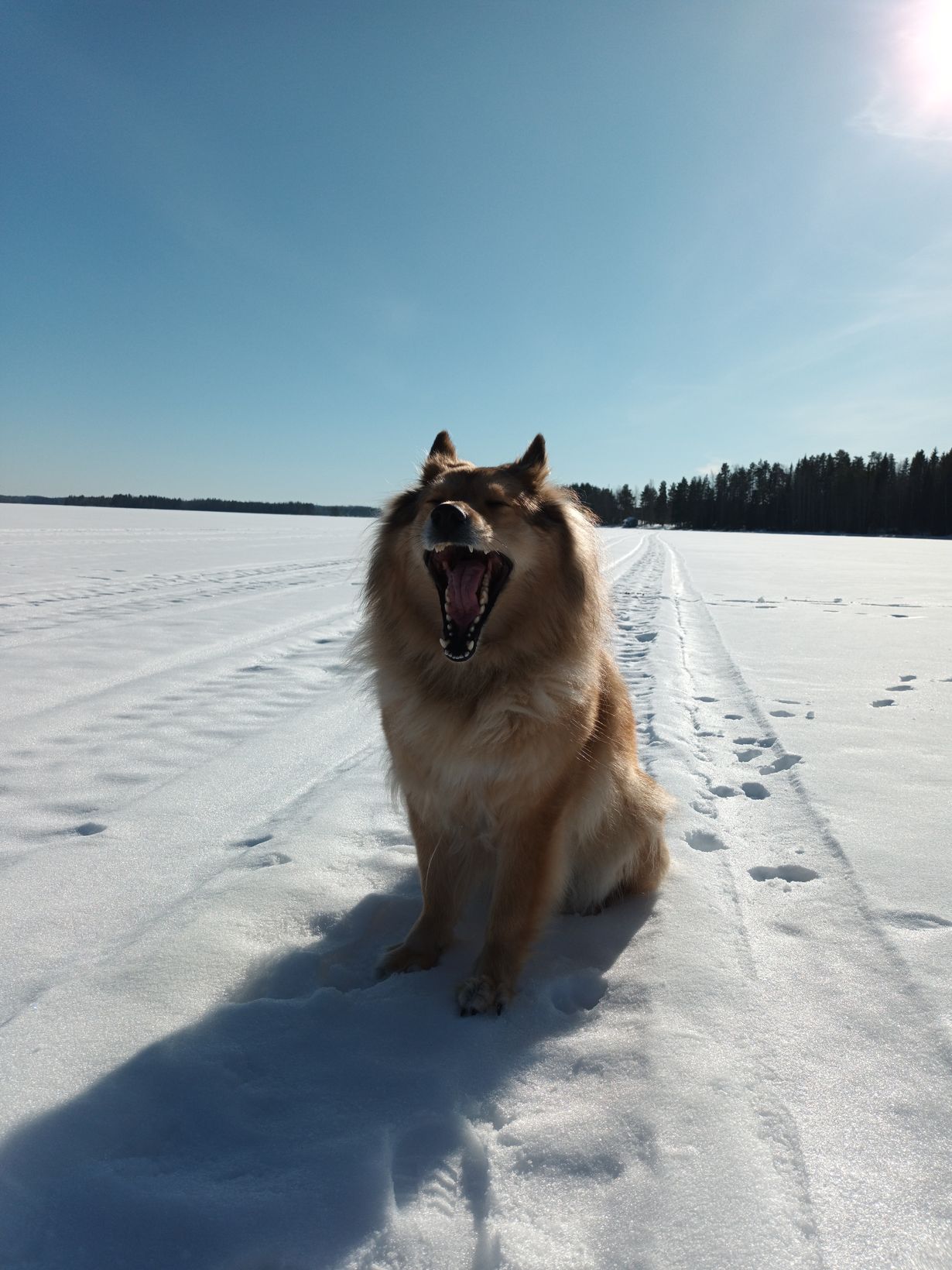 Rakas monirotuinen Taiga on ehdoton talvi urheilija. Nauttii lumesta ja pakkasesta vielä 8 -vuotiaanakin.