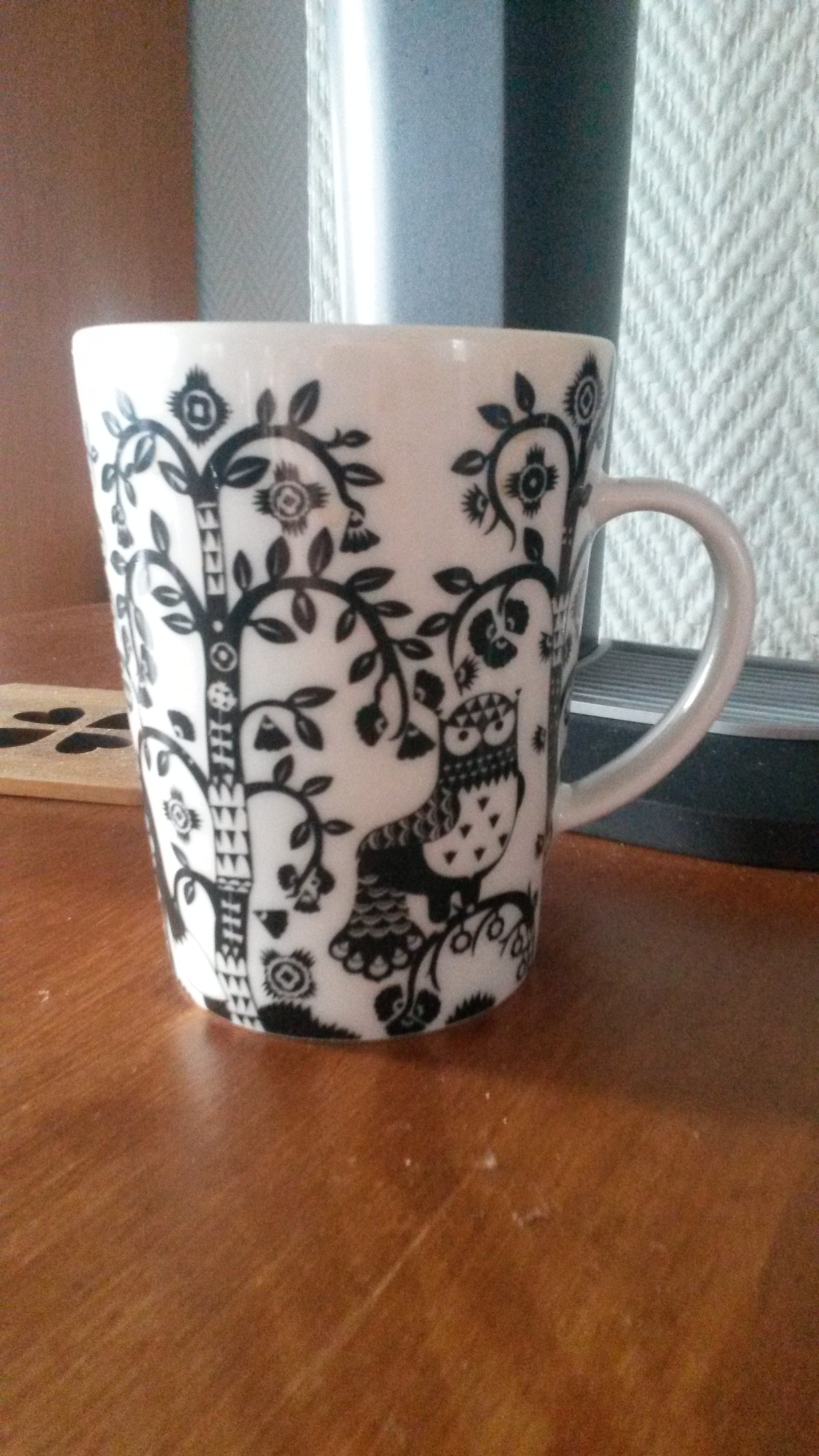 Ihana mustavalkoinen Taika. Mukin ulkonäkö vei katseen heti puoleensa ja se oli pakko saada. Tästä mukista menee normikahvi, cappuccino ja latte - mun muki.