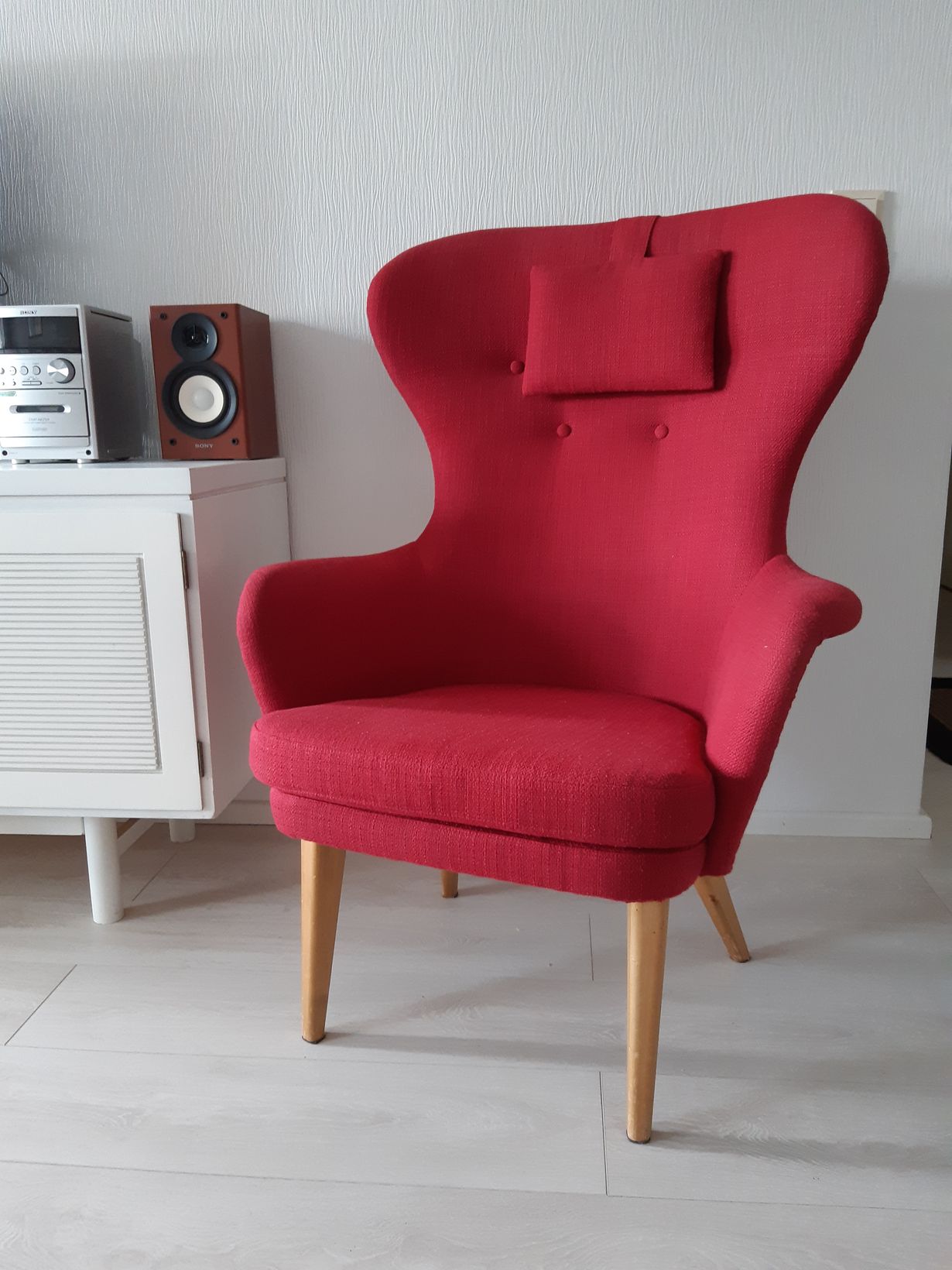Kun kummitätini/tätini Taimi kuoli, hänen omaisuuttaan siirtyi lapsuudenkotiini. Sieltä omin itseoikeutetusti tämän kaunottaren omaan kotiini.Tuolin on valmistanut kummisetäni Kaarlo Virtanen, joka oli taitava puuseppä. Mallina on todennäköisesti ollut Siesta-tuoli, jota tuolini muistuttaa.