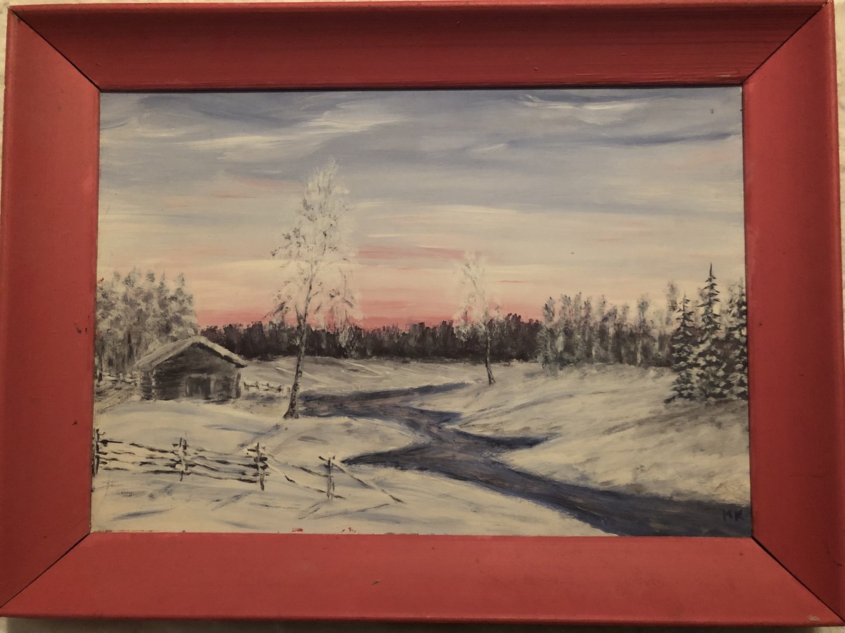 Lähetä kuvakisaan kuva taideteoksesta kodissasi- voita Moomin Arabian aakkosmukeja! Talvimaisema Jonna 9.2.2024 klo 13:33 Isäni nuorena maalaama talvimaisema.
