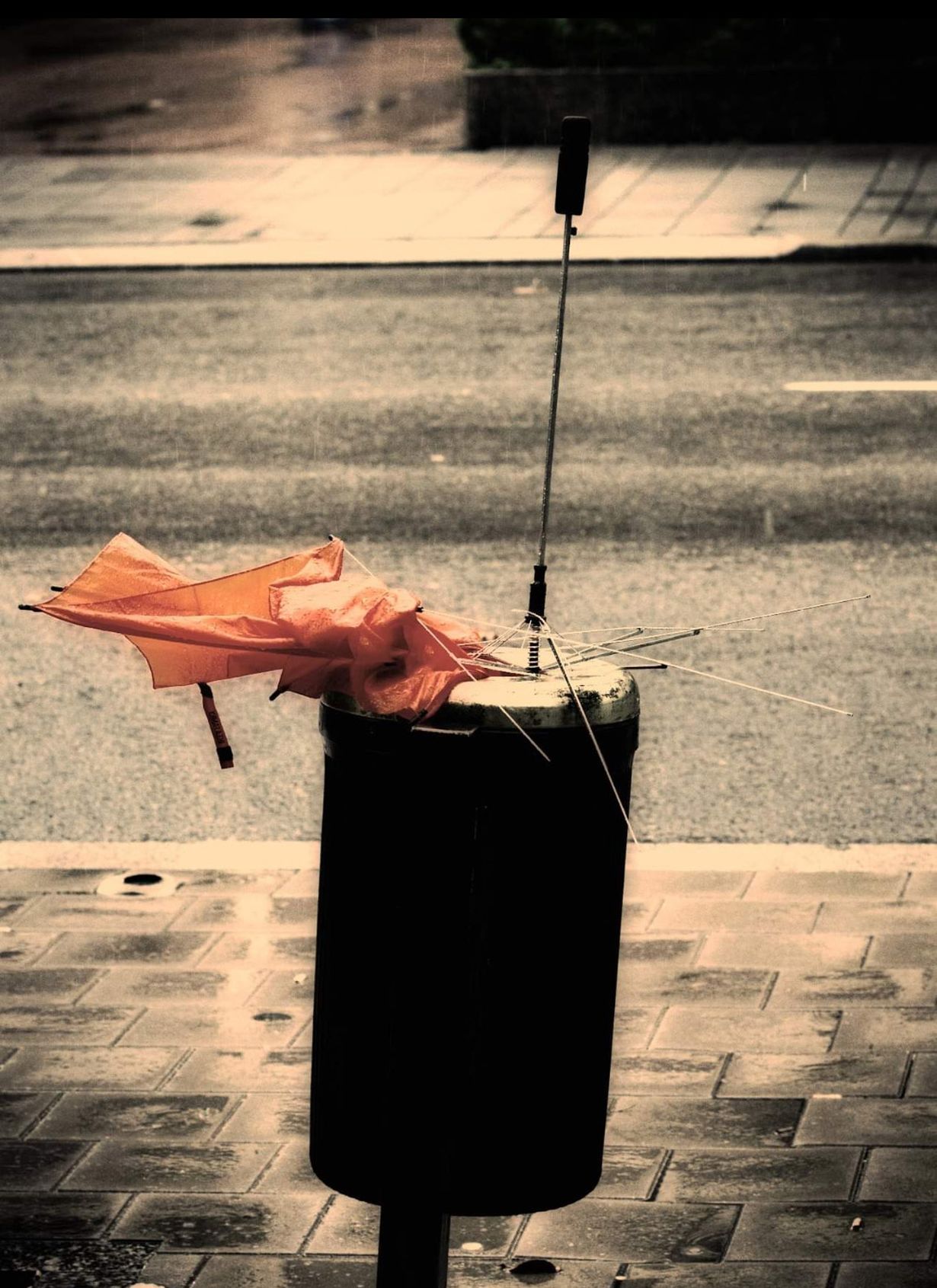 Turun Linnankatu tunnetaan tuulitunnelin, koska se päätyy satamaan ja tuuli pääsee puhaltamaan mereltä. Ei kestänyt, sateenvarjoparka, talvimyräkkää.
