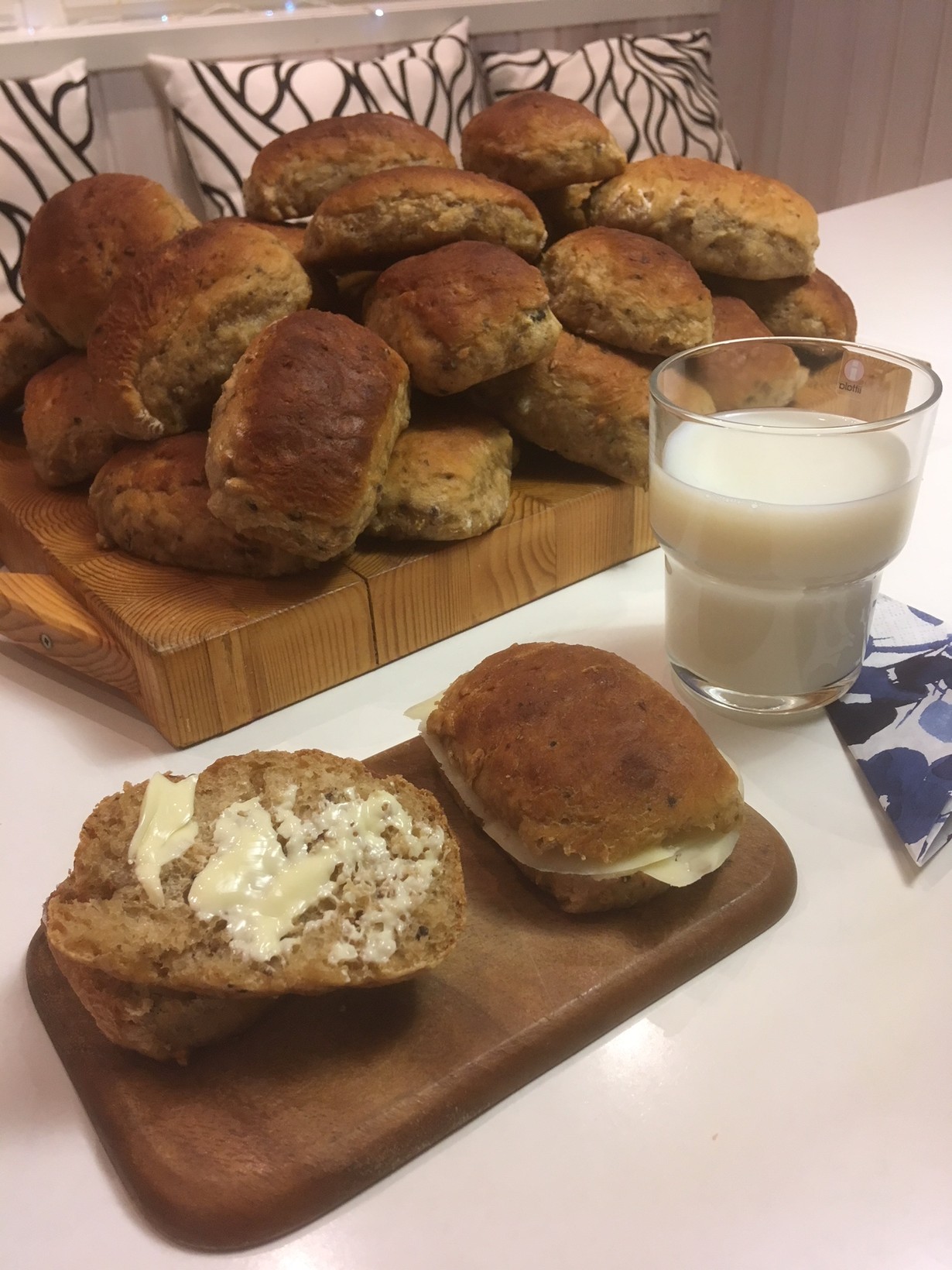 Mallassämpylät ovat meidän perheen terveellistä herkkua. Äitini teki niitä jo minun lapsuudessa ja nyt minä leivon niitä perheelleni. Sämpylöiden salaisuus piilee kaljamaltaissa, siirapissa, erilaisissa siemenissä ja omenahillossa. Uunista otettaessa ne voidellaan siirappivedellä ja parhaalta ne maistuvat heti lämpöisenä voin kera. Myös työkaverini saavat nauttia sämpylöistä silloin tällöin.