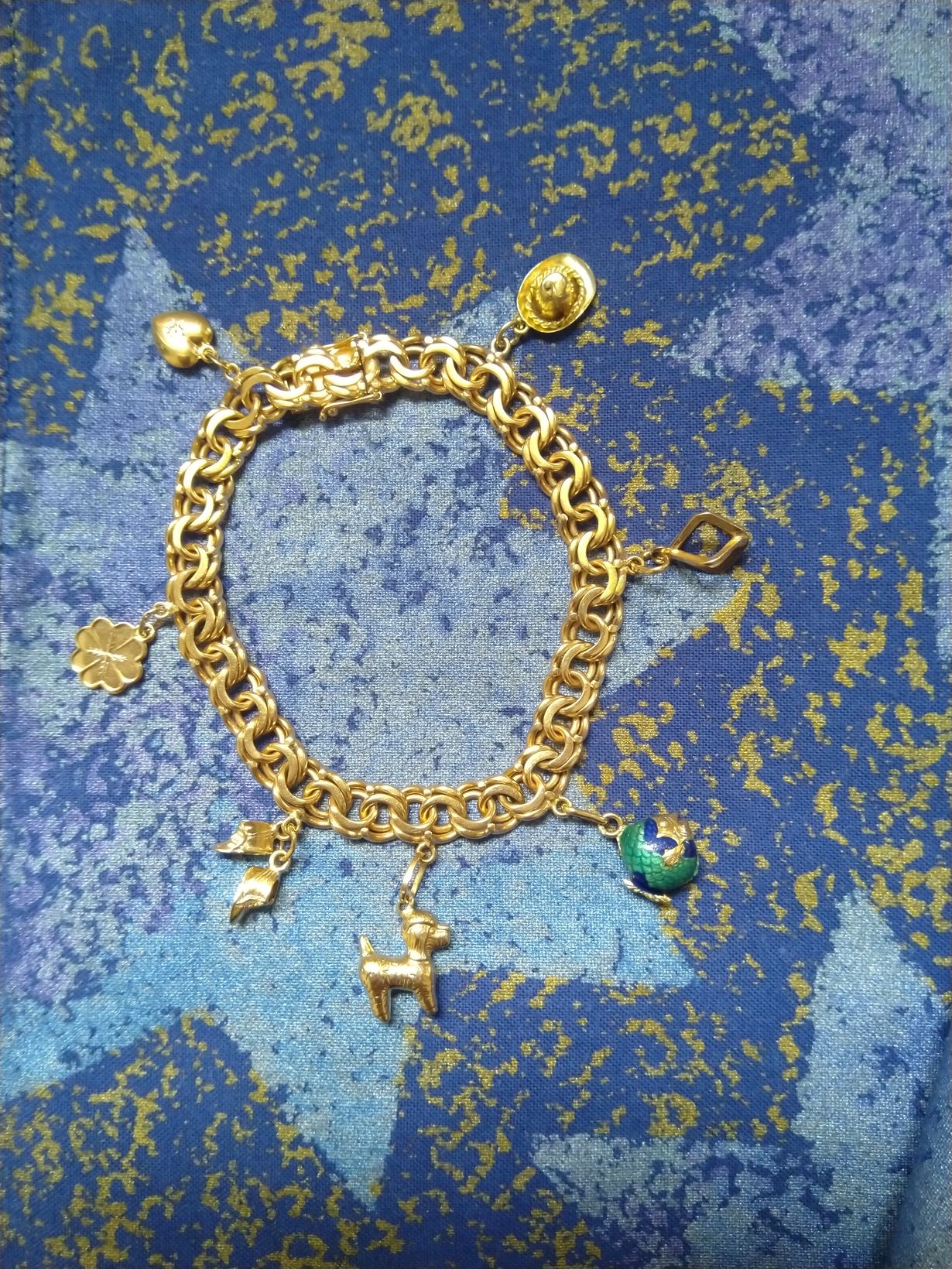 Isäni siskolta perintönä tullut rannekoru 1960 luvulta. Mukavan tädin muisto säilyy korussa.