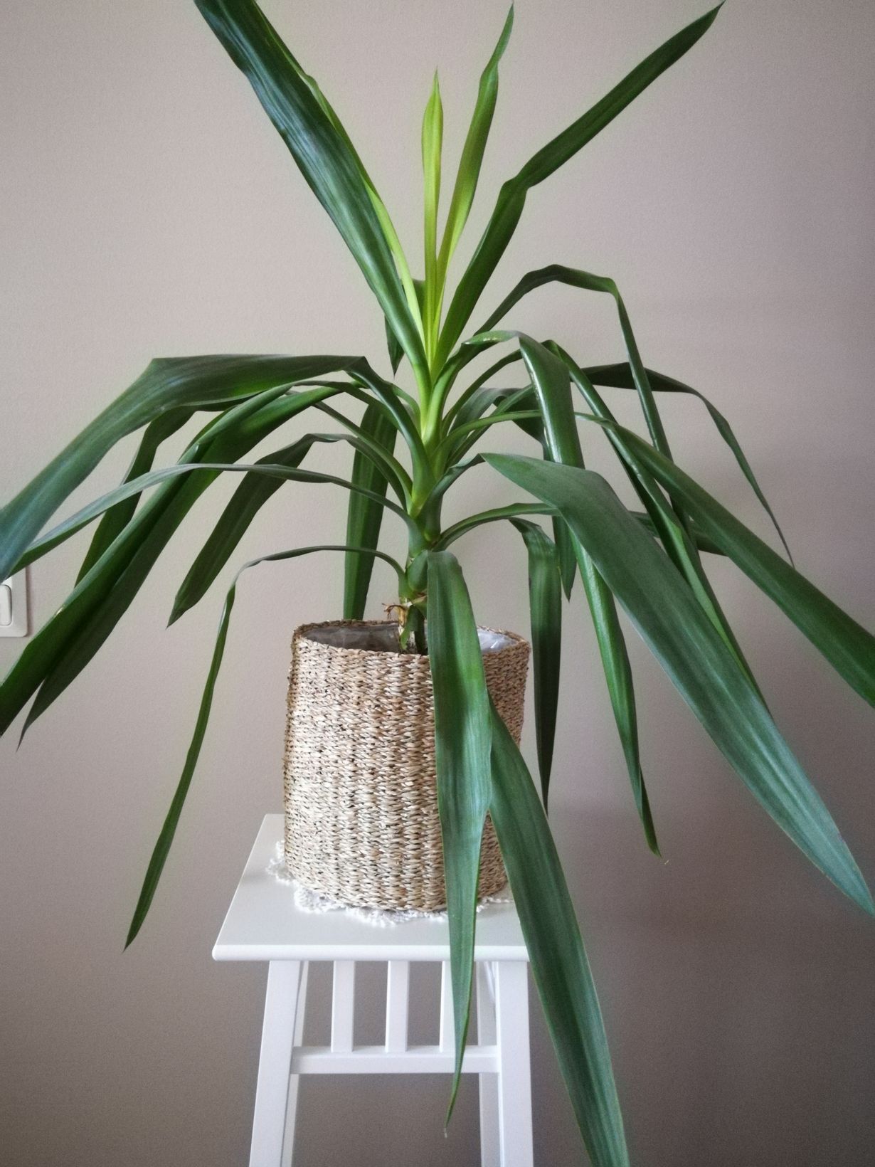Alunperin jukkapalmu oli mummuni, joka kuoli 30 vuotta sitten. Kasvi oli vanhemmillani, jotka katkaisivat ja juurruttivat kasvin monen monta kertaa. Tänä keväänä kasvi muutti katkaistuna meille, juurrutin ja istutin sen. Äitini olisi kasvin hävittänyt mutta minä halusin sen kotiimme, se on rakas muisto rakkaasta mummusta.
