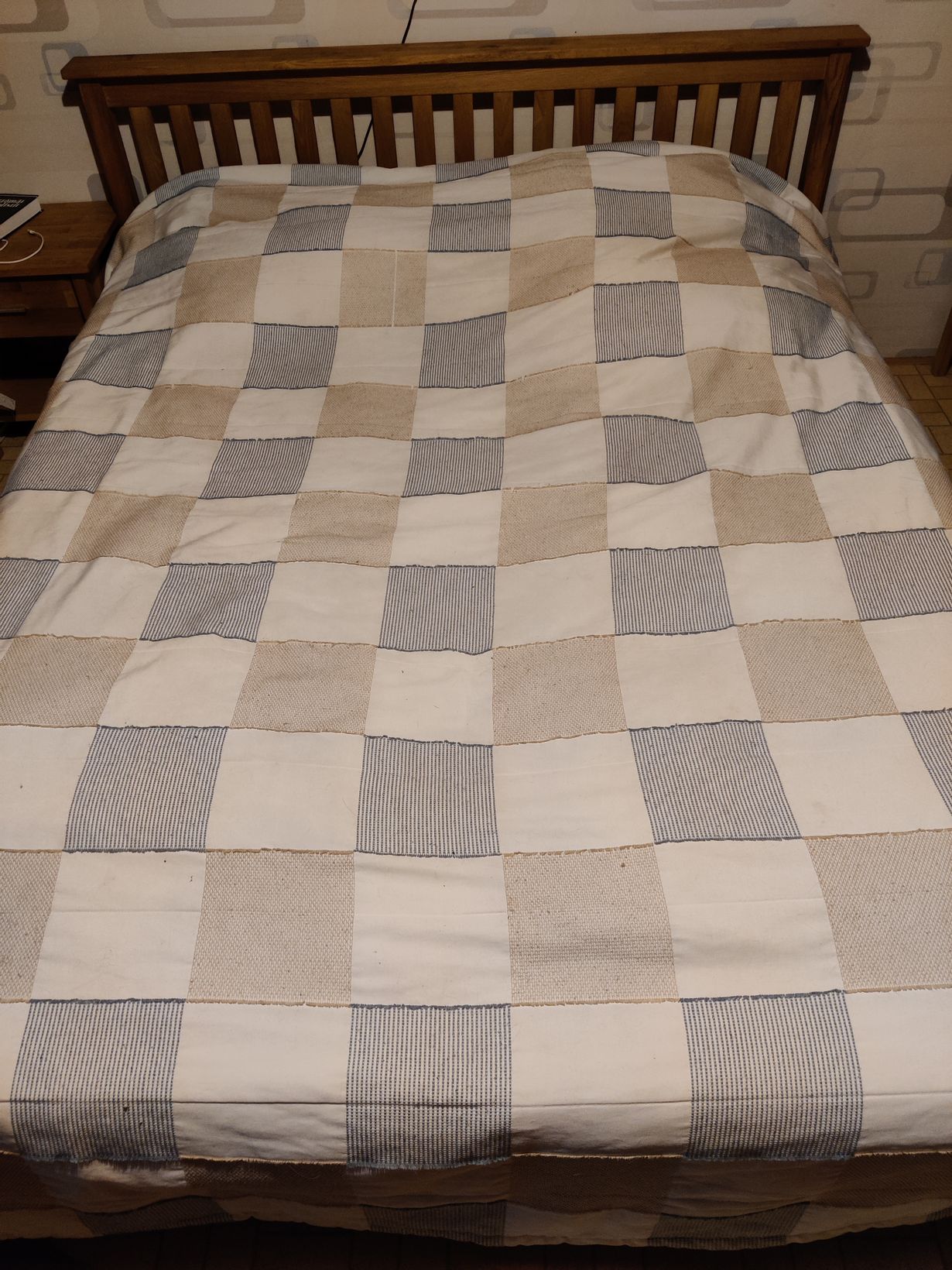Pitkästä aikaa lähdin kirpputorille ihanan anoppini kanssa. Ajatuksissa oli löytää kelvollinen päiväpeitto koiran reittämän tilalle. Tarpeeksi hyvä, mutta sellainen, ettei itku pääse, jos vielä koira päättää testata siihen hampaiden puruvoimaa. ☺️ Löysin juuri sopivan Familonin päiväpeitto tähän tarkoitukseen. Väritkin olivat juuri sopivat meidän makuuhuoneeseen.