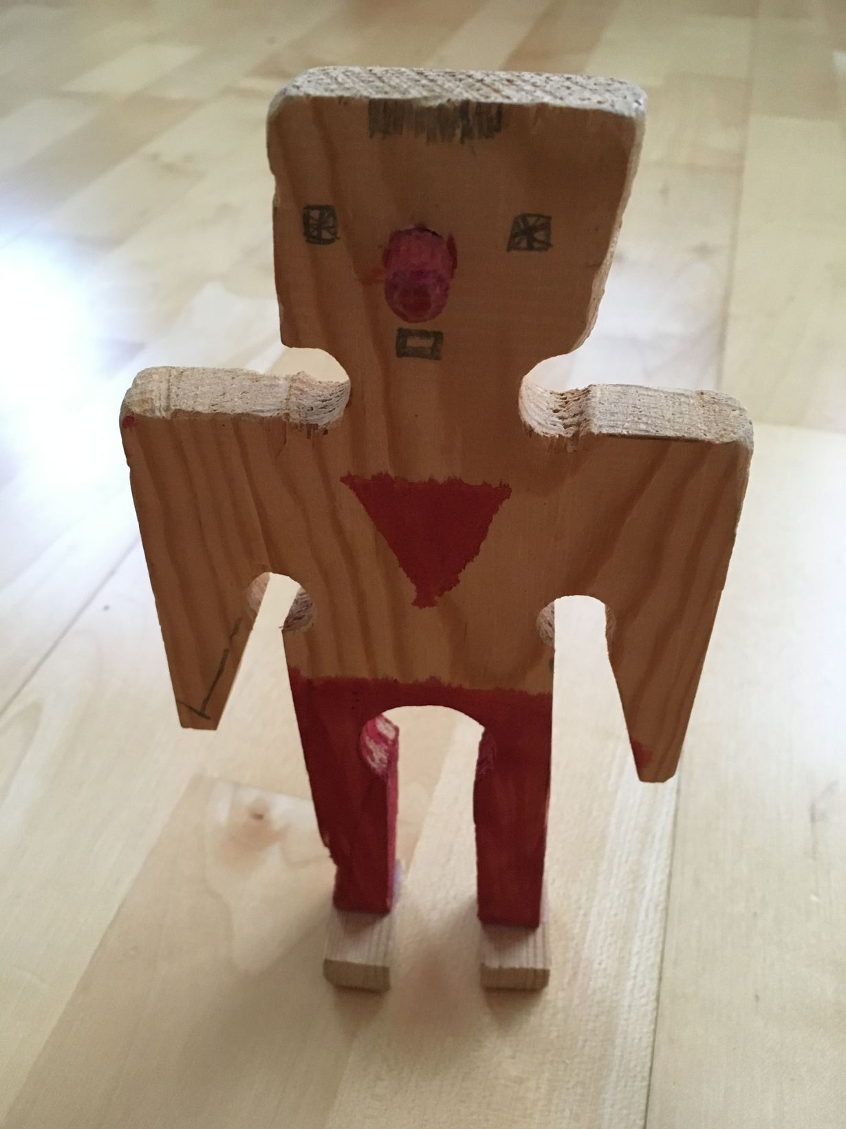 Tein tämän ukkelin joskus ala-asteella. Myöhemmin se pääsi matkoille mukaan, kun äitini kätki sen matkalaukkuun ja aloimme piilottaa sitä toistemme laukkuihin aina, kun jommallakummalla oli reissu tiedossa. Ukkeli on todellinen reissu-Reiska!