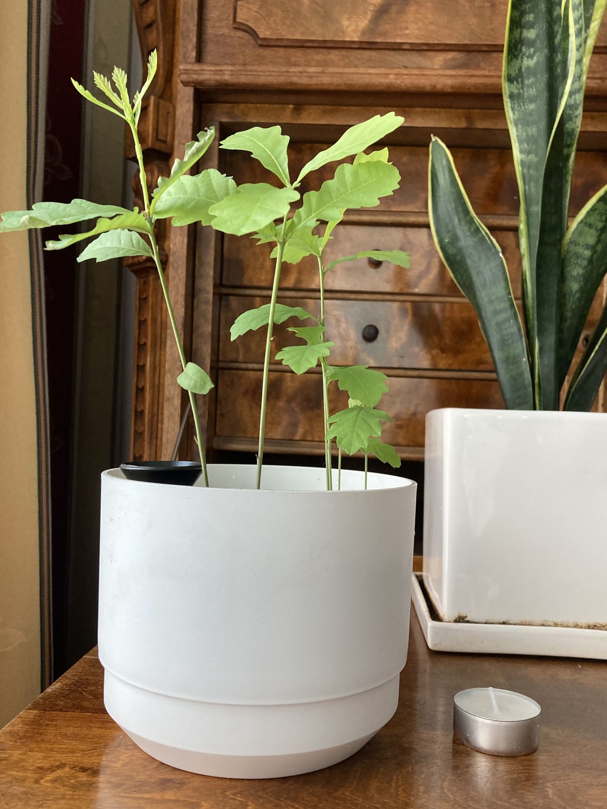 Poimin muutamia tammenterhoja syksyllä maasta, juurrutin vedessä ja nyt toivon, että näistä kasvaa aikanaan tammi.