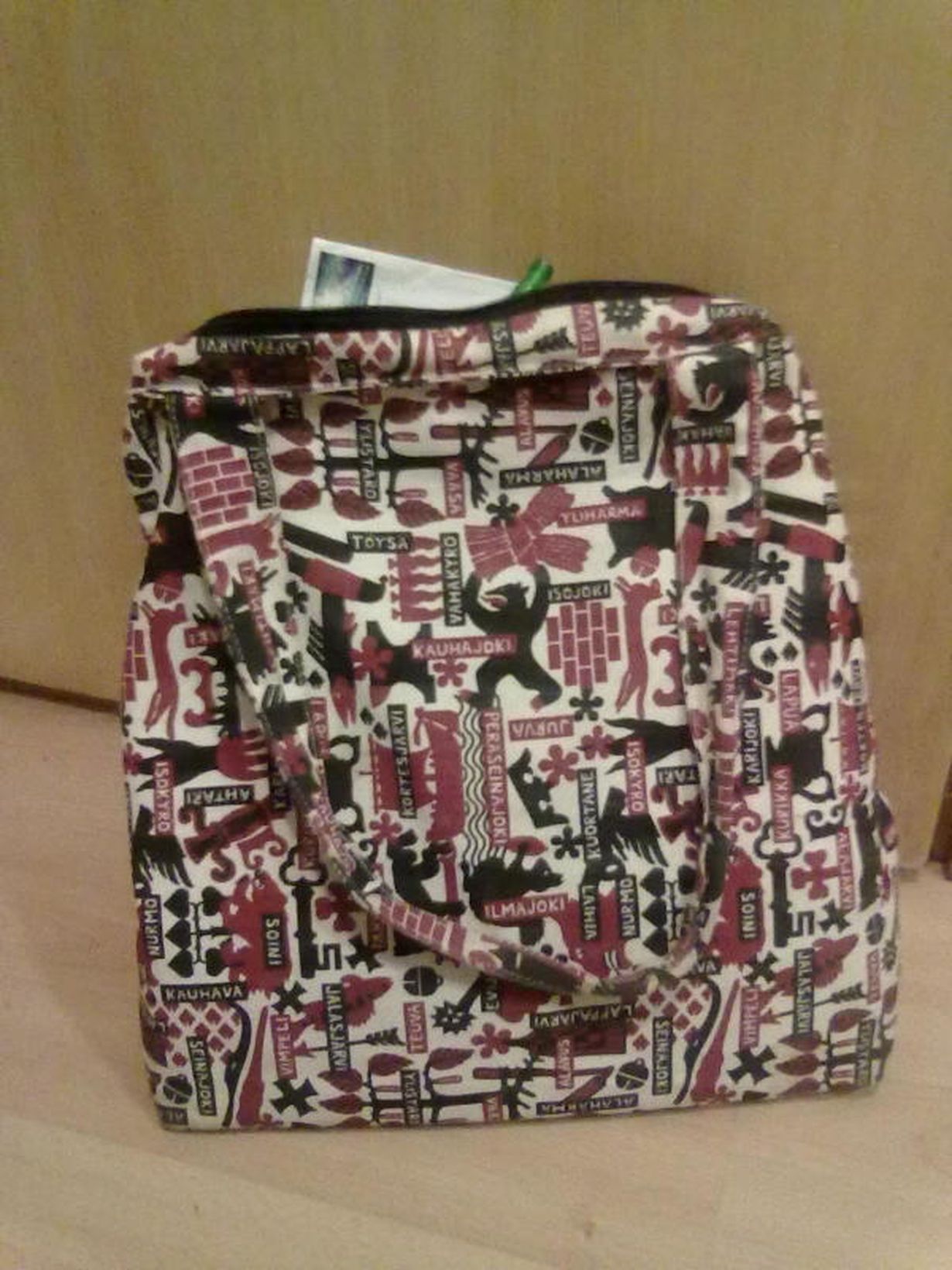 Koto-sarjan laukkuhuni on painettuna pohojalaaskuntien nimet ja vaakunat, ennen näitä vihoviimmeesiä kuntaliitoksia. Mikäs paremmin vois sopia tällääselle juntille ku mä!