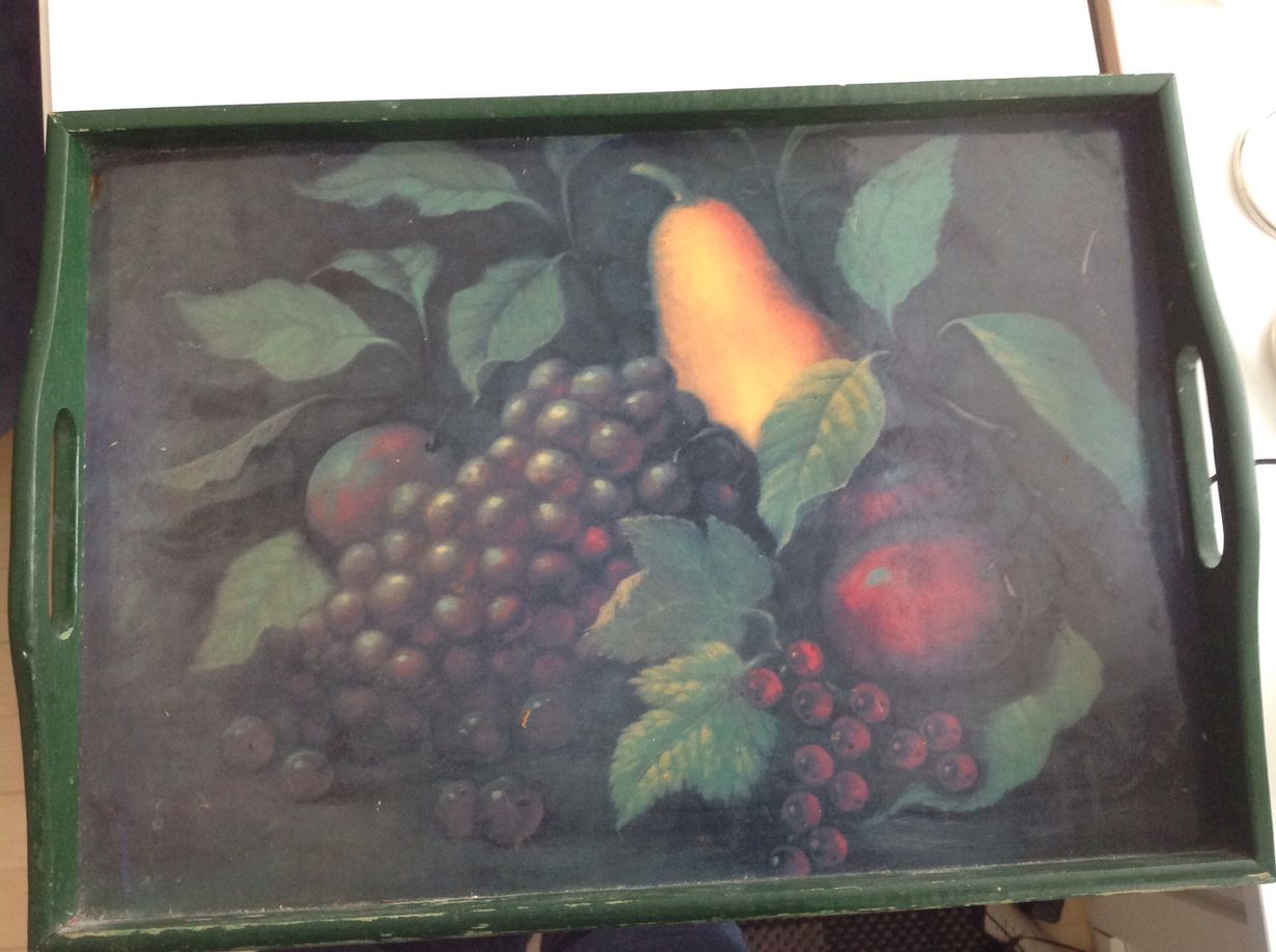 puinen tarjotin on tullut huusholliin postimyynnistä kylkiäisenä 25 vuotta sitten. Tarjotinon aina esillä, koska vahvat värit sopivat keittiööni.