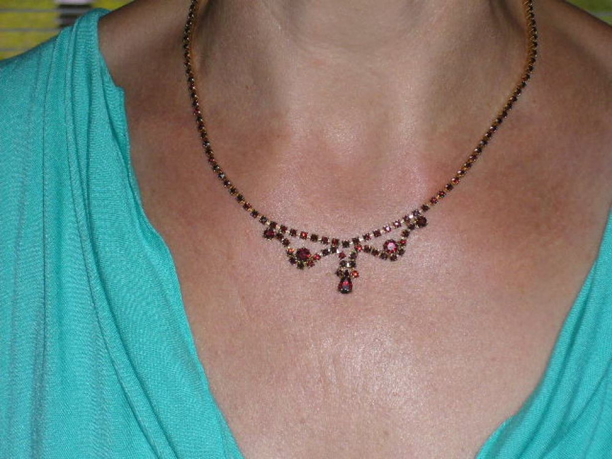 Sain korun mieheltäni ollessani 21v. Olimme ensimmäisellä yhteisellä lomamatkalla Shotsissa. Koru on ollut monessa juhlassa mukana. Myös lainassa tyttäreni sekä sisaren tyttäreni häissä, koristamassa heidän kaulaansa. Aina se vaan on yhtä kaunis, vaikka se onkin jo lähes 33 vuotta vanha.
