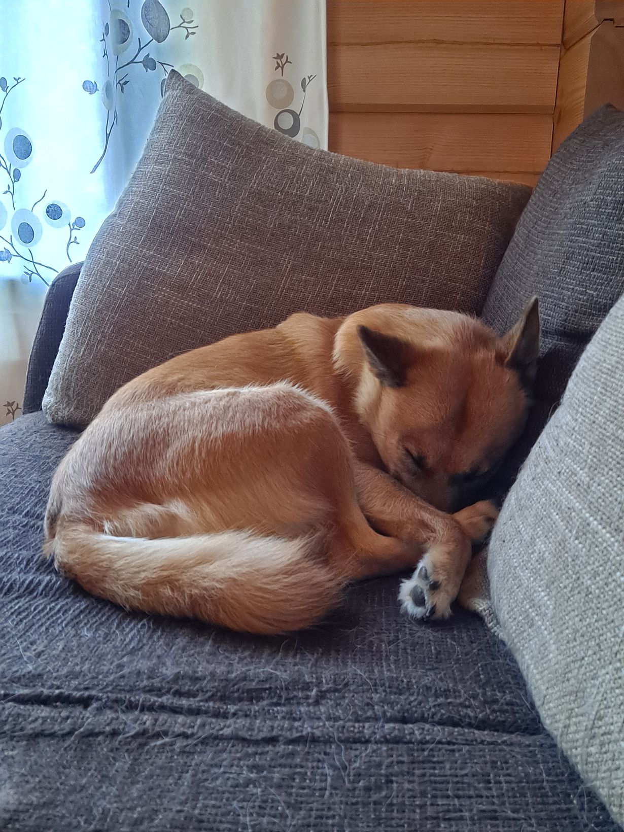 Olin sairauslomalla ja tuli nukuttua sohvalla päikkäreitä. Minttu koiruli oli kaverina.