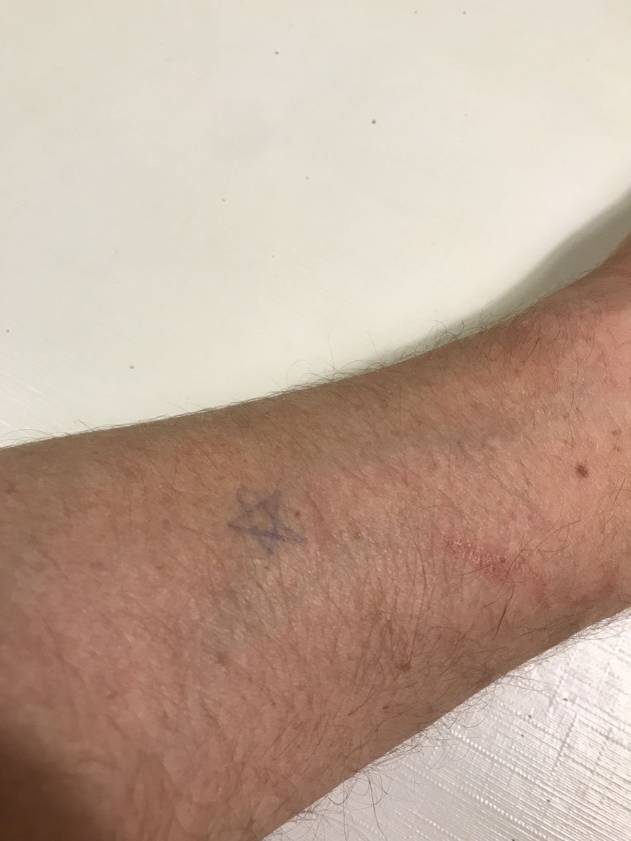 Rakkaani tyttären piirtämä tatuointi käsivarteeni, koska minulla ei ole oikeita yhtäkään. Tämä on ilmeisesti jo erikoista nykyaikana, tykkään kyllä hyvin tehdyistä tatuoinneista, varsinkin jos niillä on joku tarina tai tausta omistajilleen.