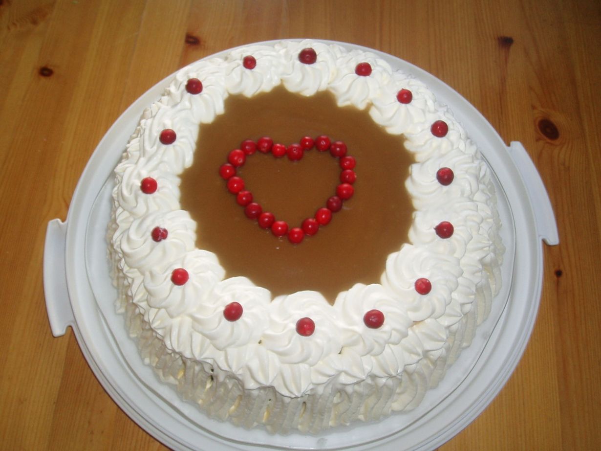 Kinuskikakku. Aina takuuvarma kakku. Itse keitetty kinuski. Täytteenä itse tekemä omanehillo ja joukkoon lisätään raastettua omenaa ja sitruuna mehua.Reunoilla pursotettu kermaa+rahkaa (4dl kermaa+1prk rahkaa ja tietysti sokeria.