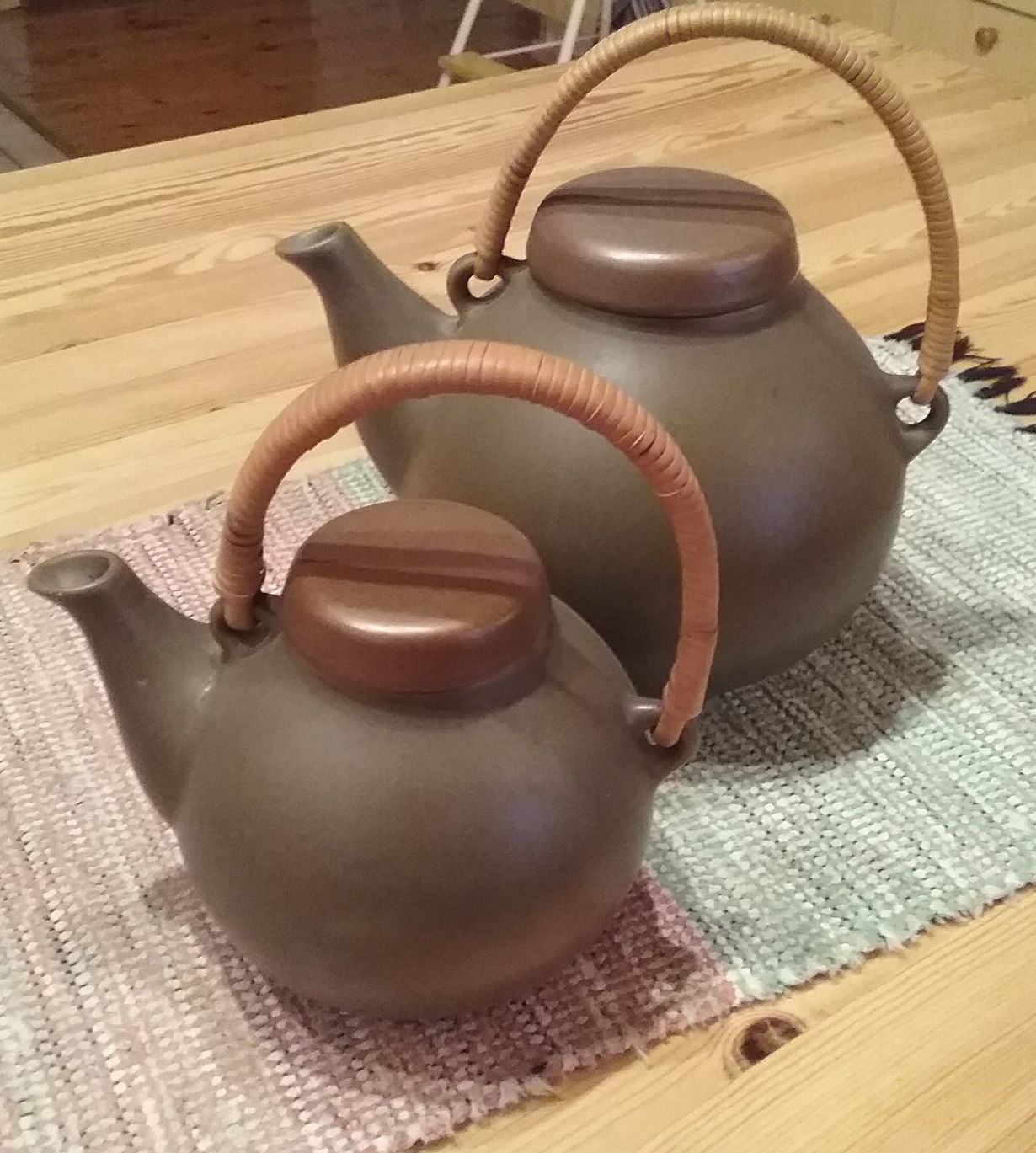 Näihin Arabian teekannuihin liittyy paljon muistoja 50-luvulta. Ollessani pikkutyttö kannut olivat ahkerassa käytössä, nyt ne ovat kodissani muistoesineenä.