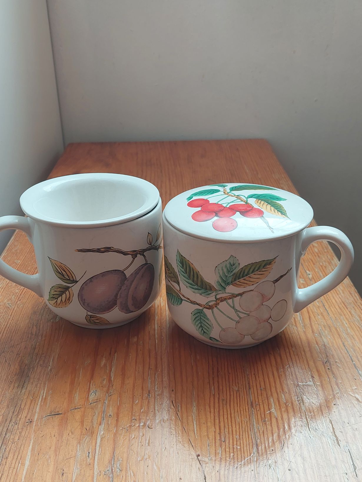 Olen saanut lahjaksi 2 mukia.Niissä on sihditkin,joita en juuri käytä sekä kannet.Useimmiten juon rooibos-teetä.