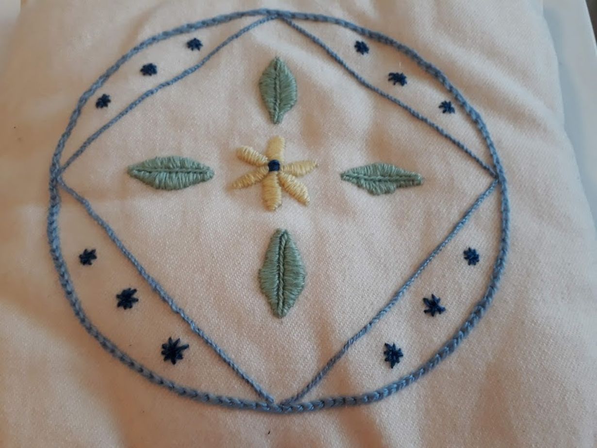 Teini-ikäisenä tehty tyyny, joka on ollut joka päivä käytössä siitä asti
