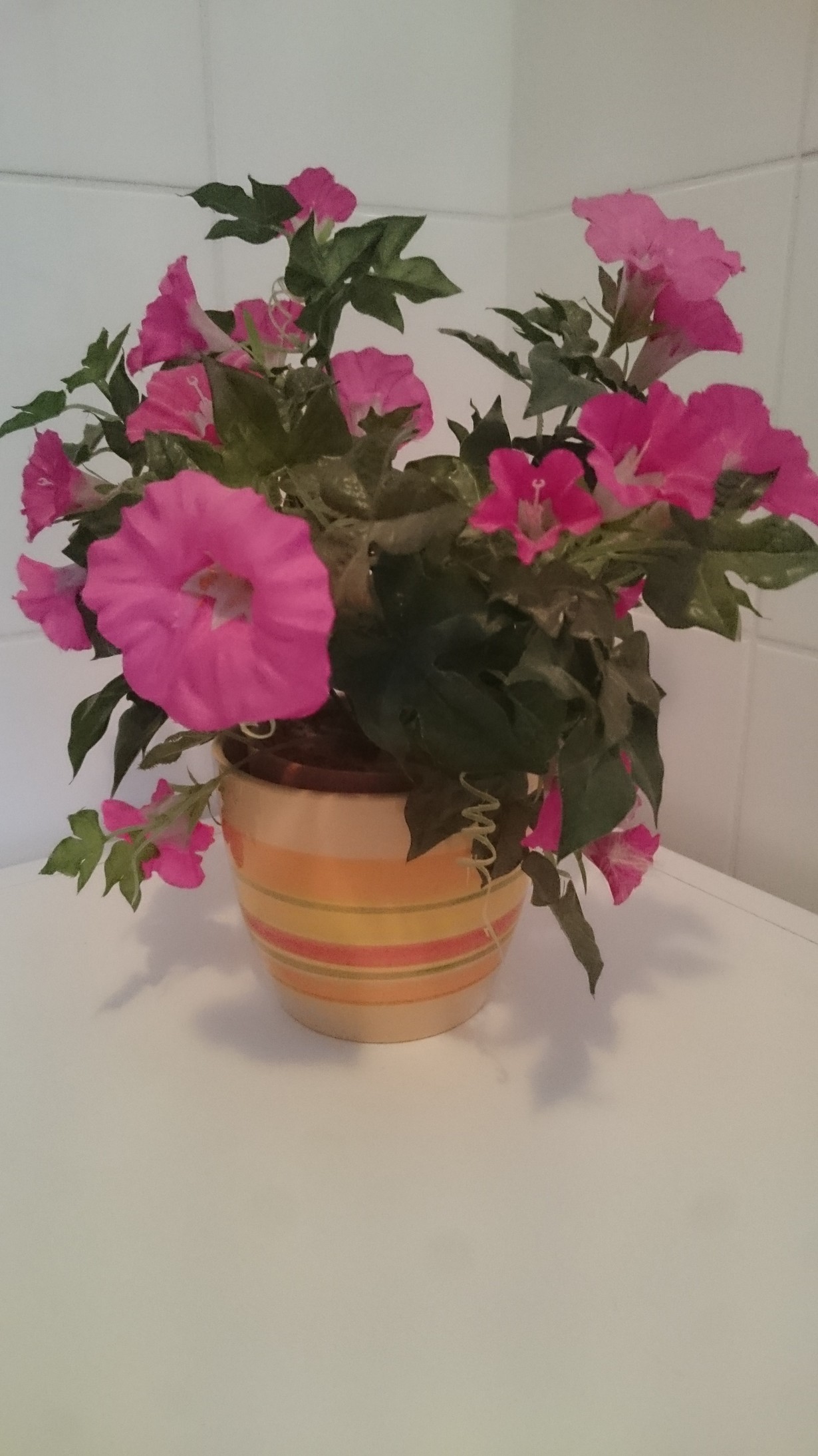 Minulla ei ole oikeita kukkia. Onnistun aina tappamaan kaikki liika kastelulla. Äitini on ostanut minulle tämän ihanan pinkin ikikukan. Hän on myös ostanut minulle ikuisesti kestävän joulutähden.
