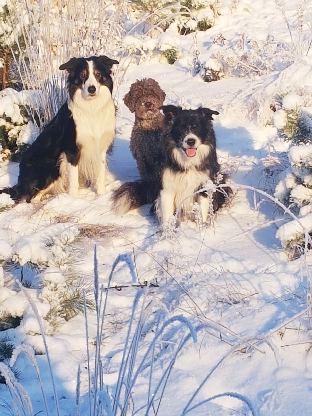 Bordercollie pojat Torsti ja Tempo ovat toimineet 'hengen pelastajina jäädessäni leskeksi, kuntouttajina lonkkaleikkauksen jälkeen. Ilman näitä kahta olisin jäänyt kotiin suremaan ja helpommin jäänyt sohvan nurkkaan vetelehtimään. Mukana lenkeillä usein ystäväni Arja Jade lagoton kanssa