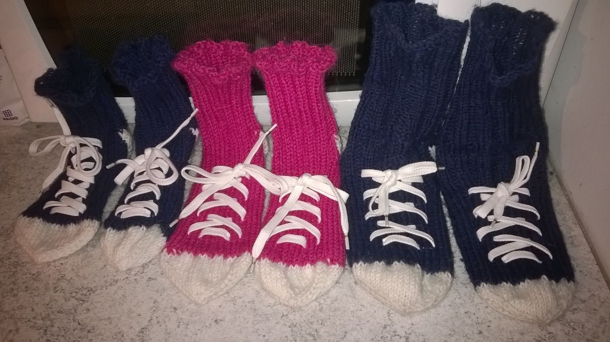 Kuvaa itse neulomasi villasukat - voit voittaa Nanson lahjakortin! Tennarisukat Allu 15.12.2016 klo 21:55 Sisaruksille jokaiselle omat tennarisukat. Tennarit jalkaan!