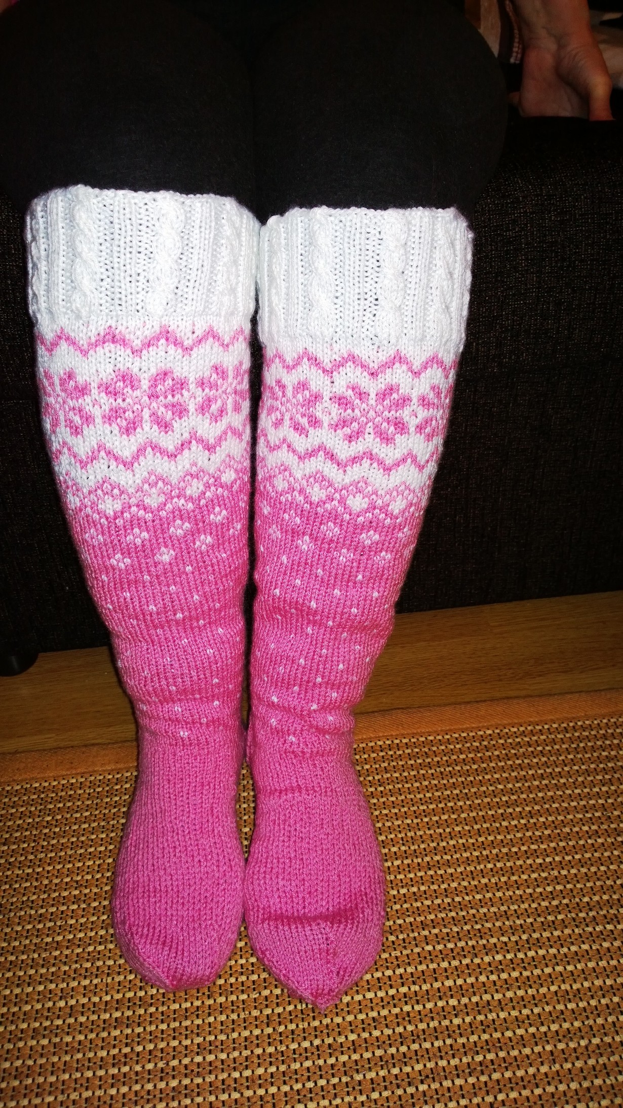 Nää sukat pelasti mut tylsyydeltä kun jouduin makaamaan 3 kk selälläni selkäleikkauksen jälkeen. Hidasta oli mutta joulupukki sai kuitenkin toimitettua sukat perille aikanaan,