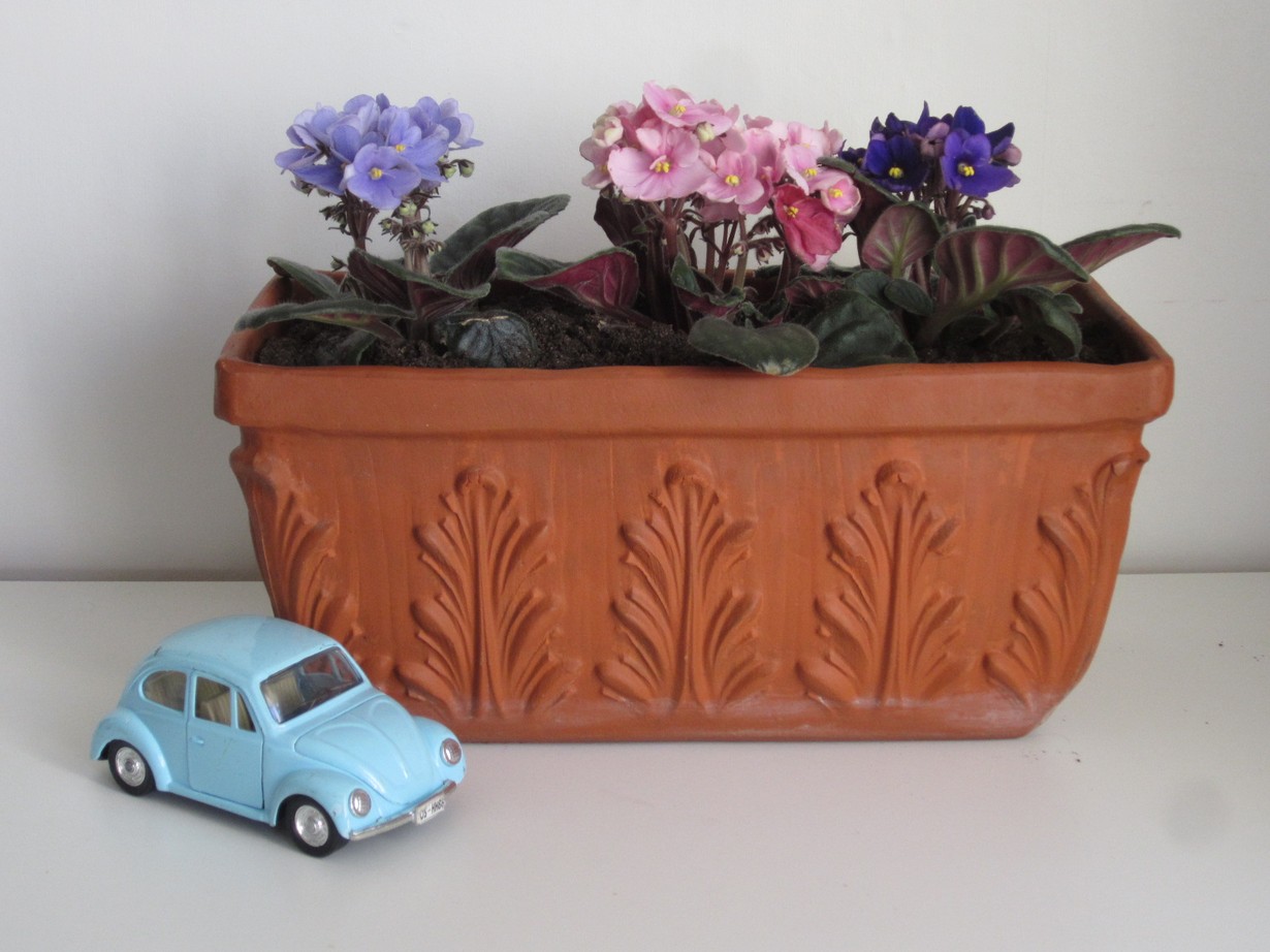 Ostin terrakottaruukun n. 20 vuotta sitten Stockalta. Vuosi vuoden jälkeen siinä on kukkinut kolme eriväristä Santa Pauliaa. Ne tykkäävät toistensa seurasta.