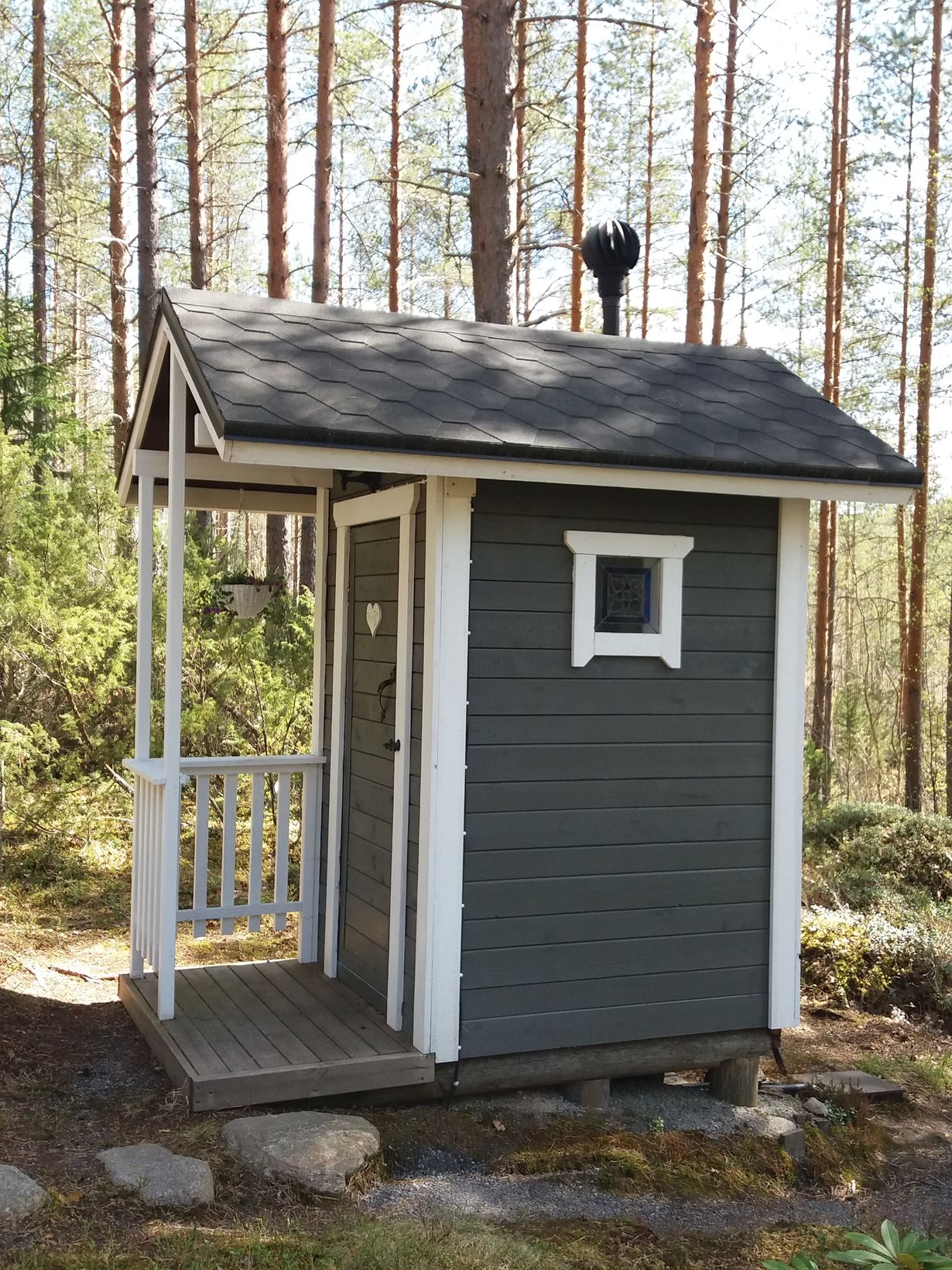 Mökkihuussia tehtiin yhteistyönä siskon ja hänen miehensä kanssa. Suurin osa on kierrätystavaraa. Ikkunana kuitenkin siskon vartavasten tähän huussiin tekemä tiffanylasi-ikkuna.