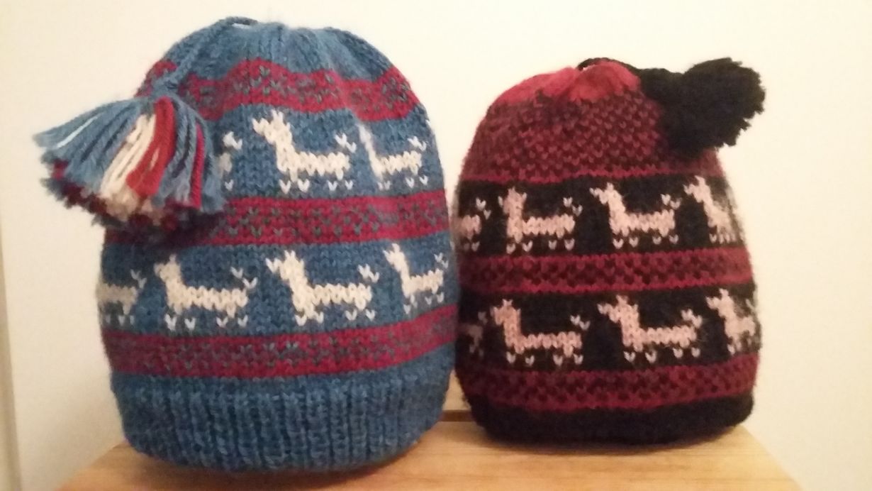 Koiramme on rodultaan Tiibetinspanieli. Kudoin lemmikkimme omaan ja mieheni pipoon. Lenkkeillessämme koiran kanssa ovat pipot tarpeen.