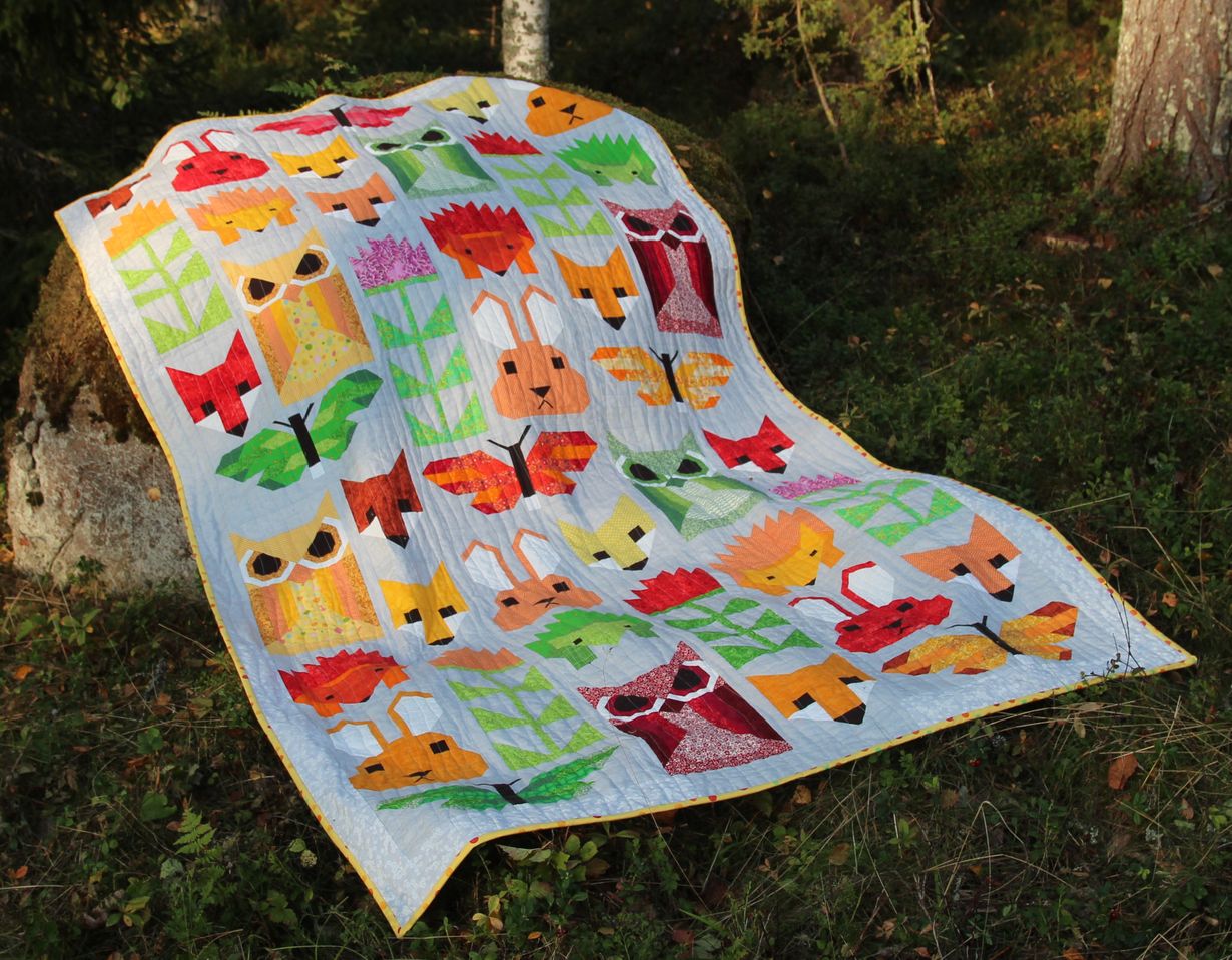Ensimmäiselle lapsenlapselle 3-vuotislahjaksi aiottu tilkkupeitto, jonka hän lopulta sai 4-vuotislahjaksi. Malli on Elizabeth Hartmanin Fancy Forest hieman sovellettuna ja siinä on 1380 palaa.
