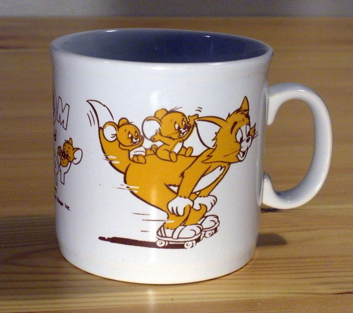 Rakas Tom & Jerry -kahvikuppini on yksi ensimmäisistä kahvikupeistani. Sain kupin lapsena ollessani isovanhempieni kanssa vierailulla Vuokatissa. Kuppi on melkoisen pieni, mutta muistoja täynnä. Kupista on juotu kaikkia mahdollisia virvoitusjuomia ja se on komistanut jo viittä eri kotiani. Kuppia koristavat Tom & Jerry -hahmot, ja se on noin 25 vuotta vanha.