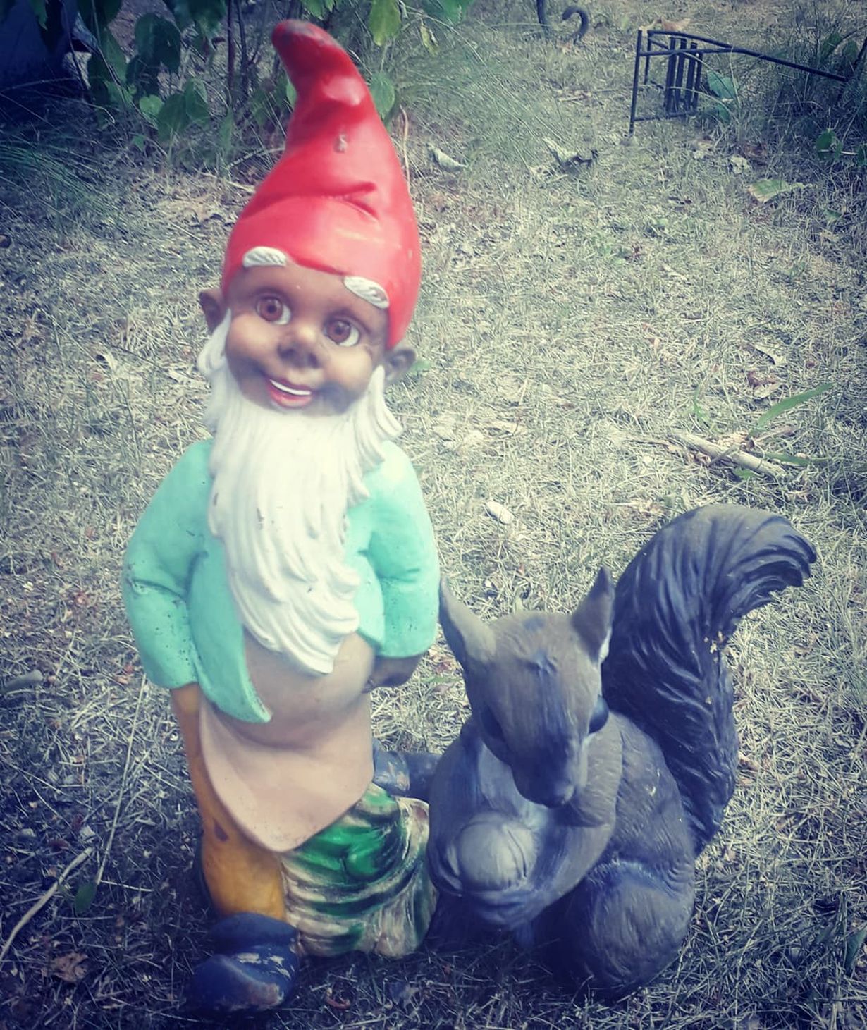 Nyt se vartio omaa puutarhaani, seuraksi on tullut oravakin.