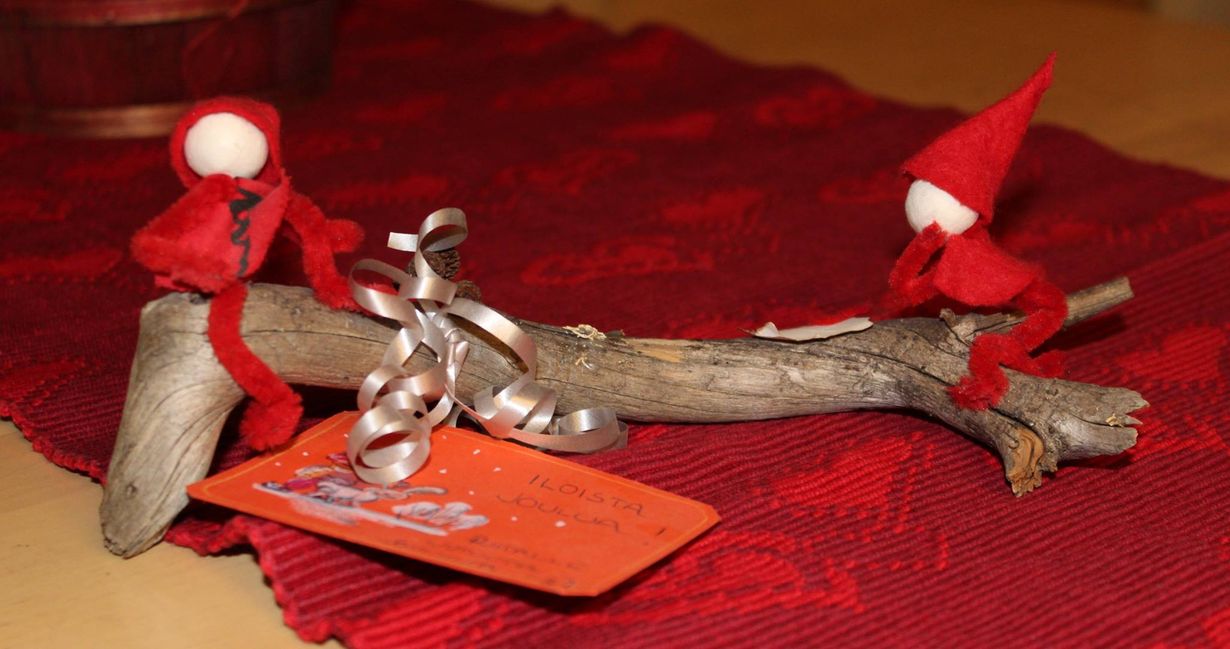 Sain tämän tonttukaksikon ystävältäni Marjalta lahjaksi lähes 30 vuotta sitten. Oksallaan istuskelevat tontut ovat siitä lähtien olleet osa joulujani.