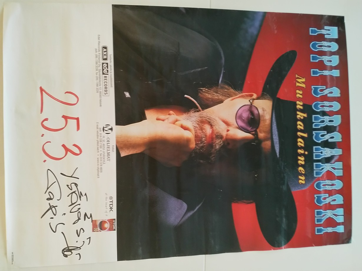 90 luvulla kohtasin Topin pohjoisessa ravintolakeikan jälkeen baaritiskillä. Kivana muistona keskustelusta juliste hänen nimmarilla.