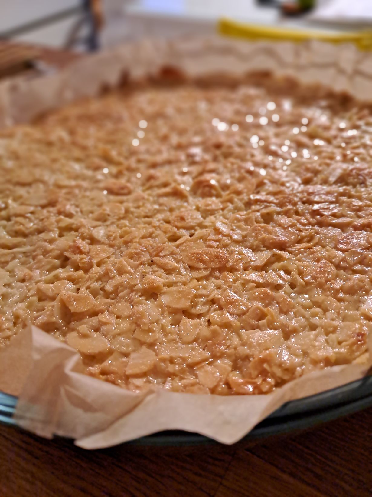 Pyysin miestäni tuomaan joulupuuroon mantelia kaupasta. Hän toikin pussillisen mantelilastuja. No pitihän ne hyödyntää, joten tein elämäni ensimmäisen tosca-piirakan. Hyvää oli!