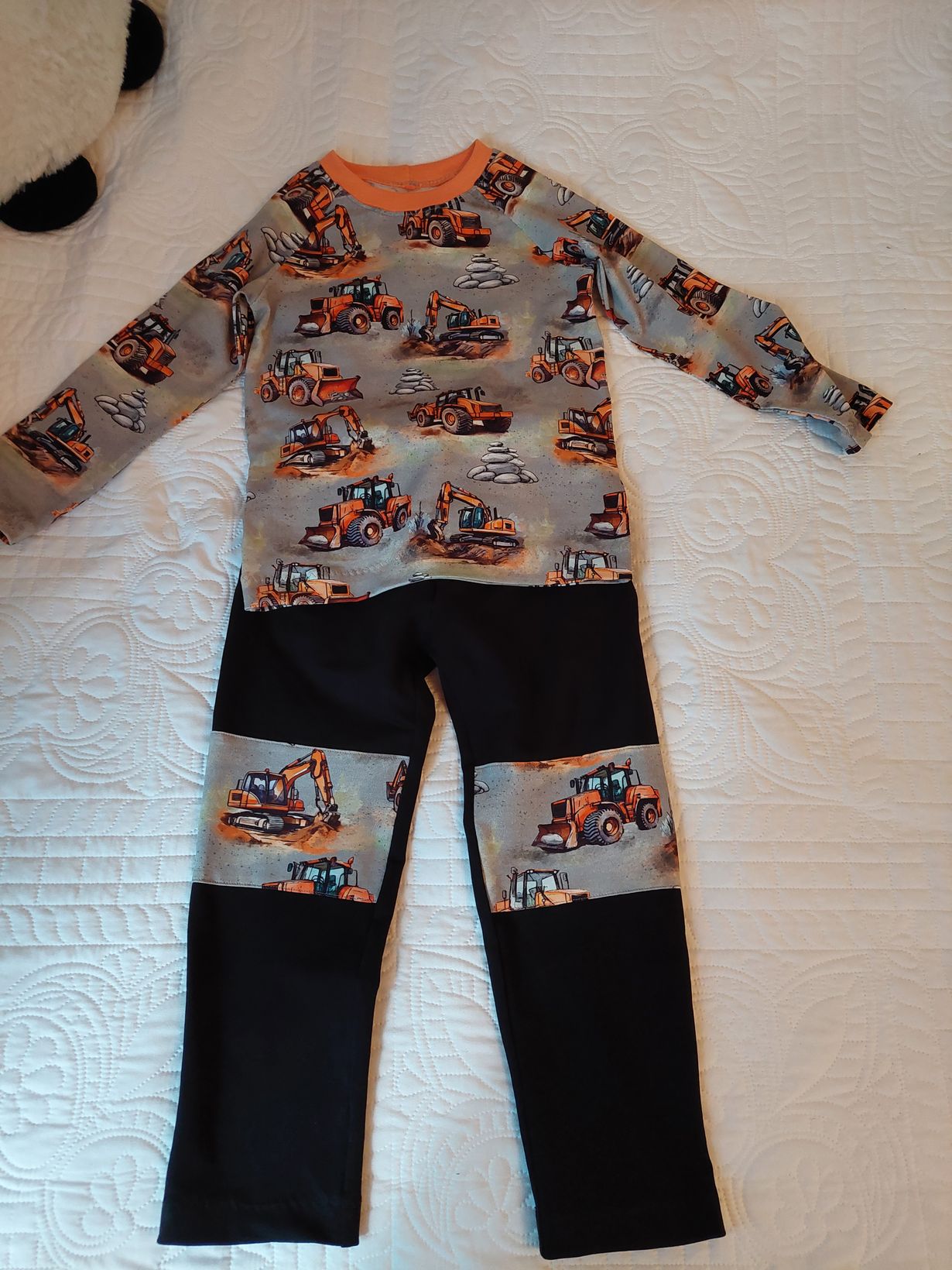 Lähetä kuvakisaan kuva lahjaksi tehdystä käsityöstä - voita Familonin pellavalakanat Traktorimiehen asu Mummu 27.9.2025 klo 9:24 Ompelin lahjaksi 4-vuotiaalle traktorimiehelle.