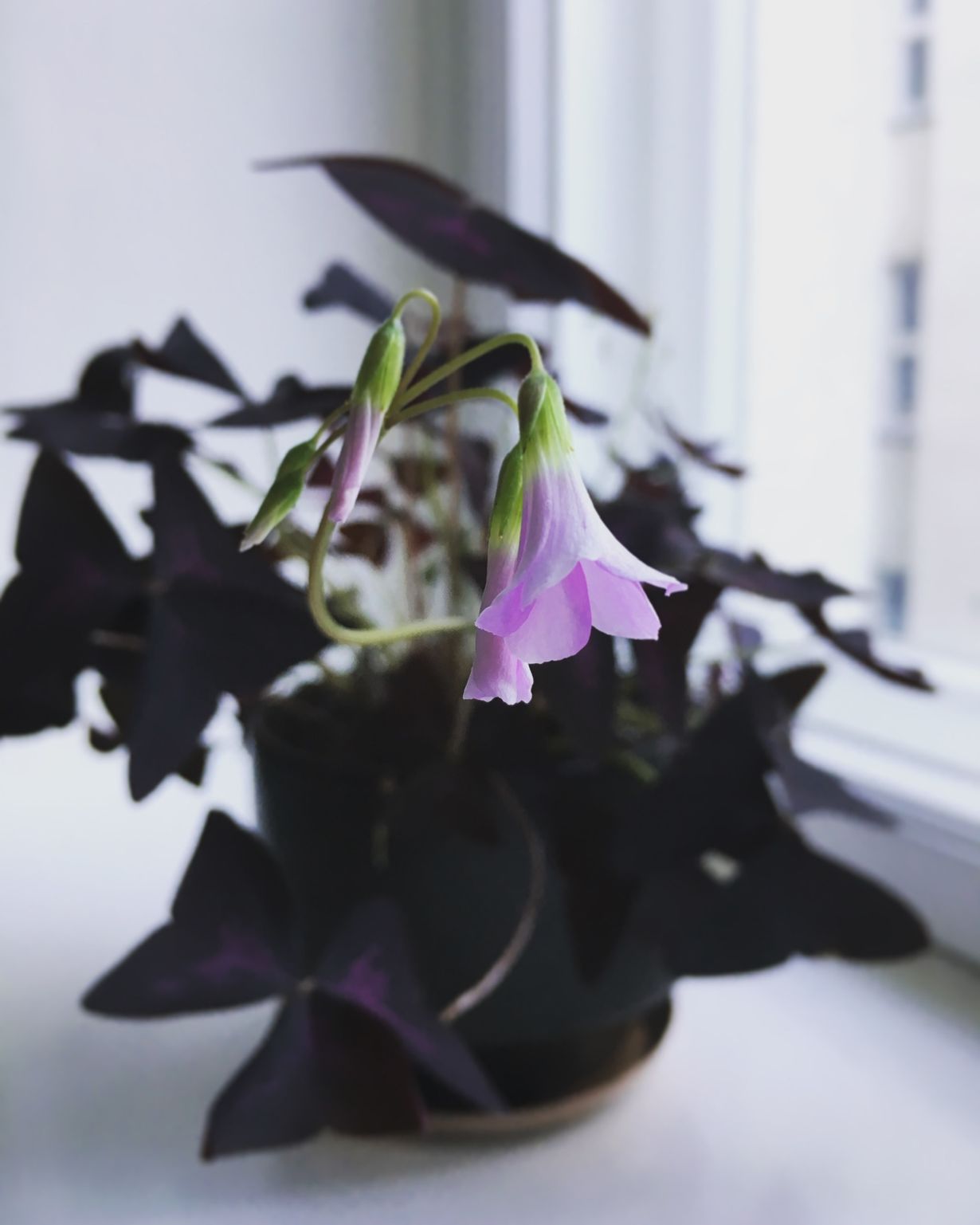 Tukholmasta metroaseman kukkakaupasta matkaan tarttunut kolmiokäenkaali ilahduttaa herkillä kukillaan aina parin kuukauden välein.