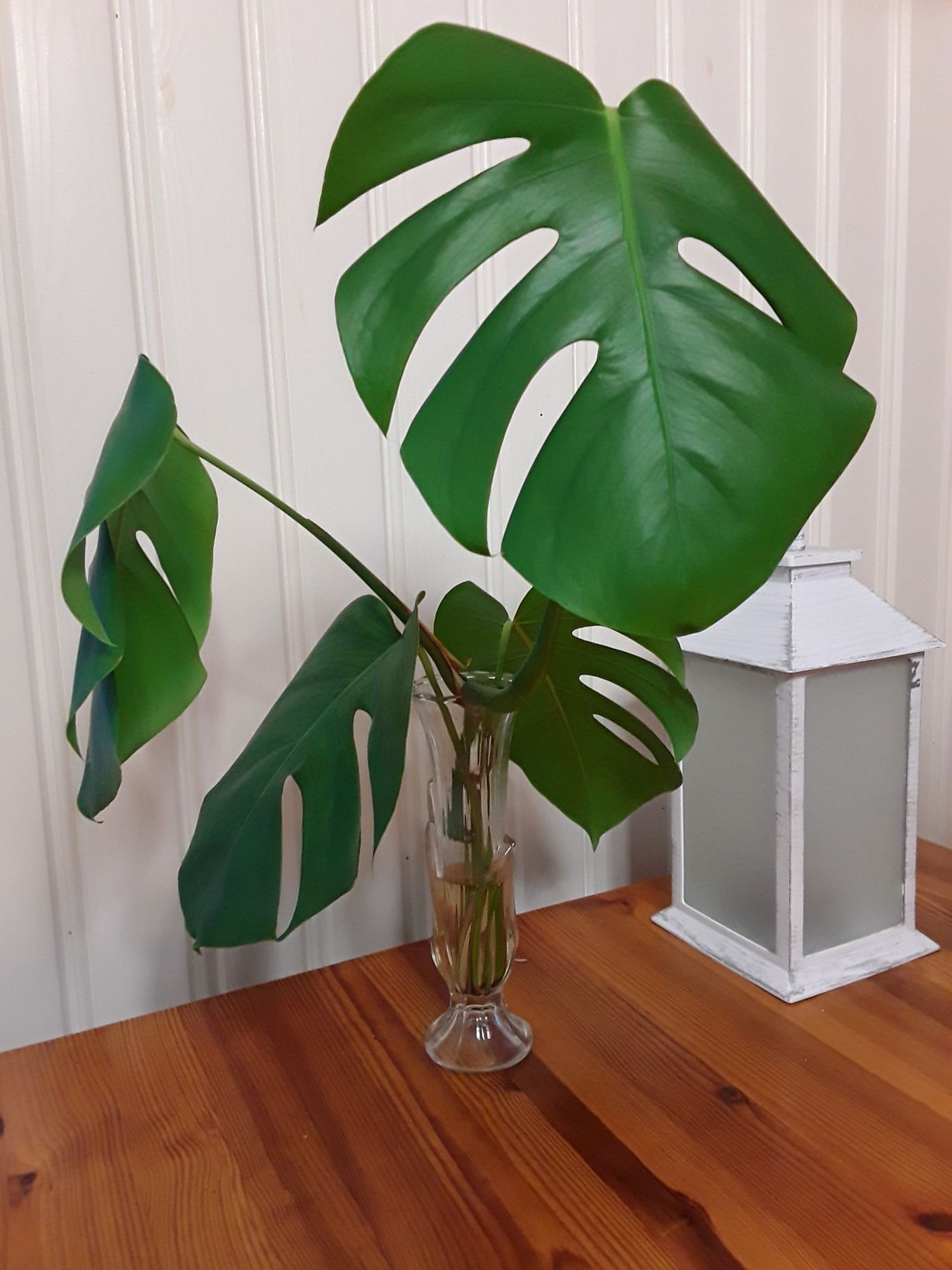 Tämän pistokkaan emokasvi saapui vuosia sitten kotiimme joulukukkakoriasetelmassa, jossa se oli vain yksi pieni kasvi muiden rinnalla. Otin sen talteen ja siitä on kasvanut muhkea peikonlehti, josta on riittänyt paljon pistokkaita edelleen jaettavaksi.