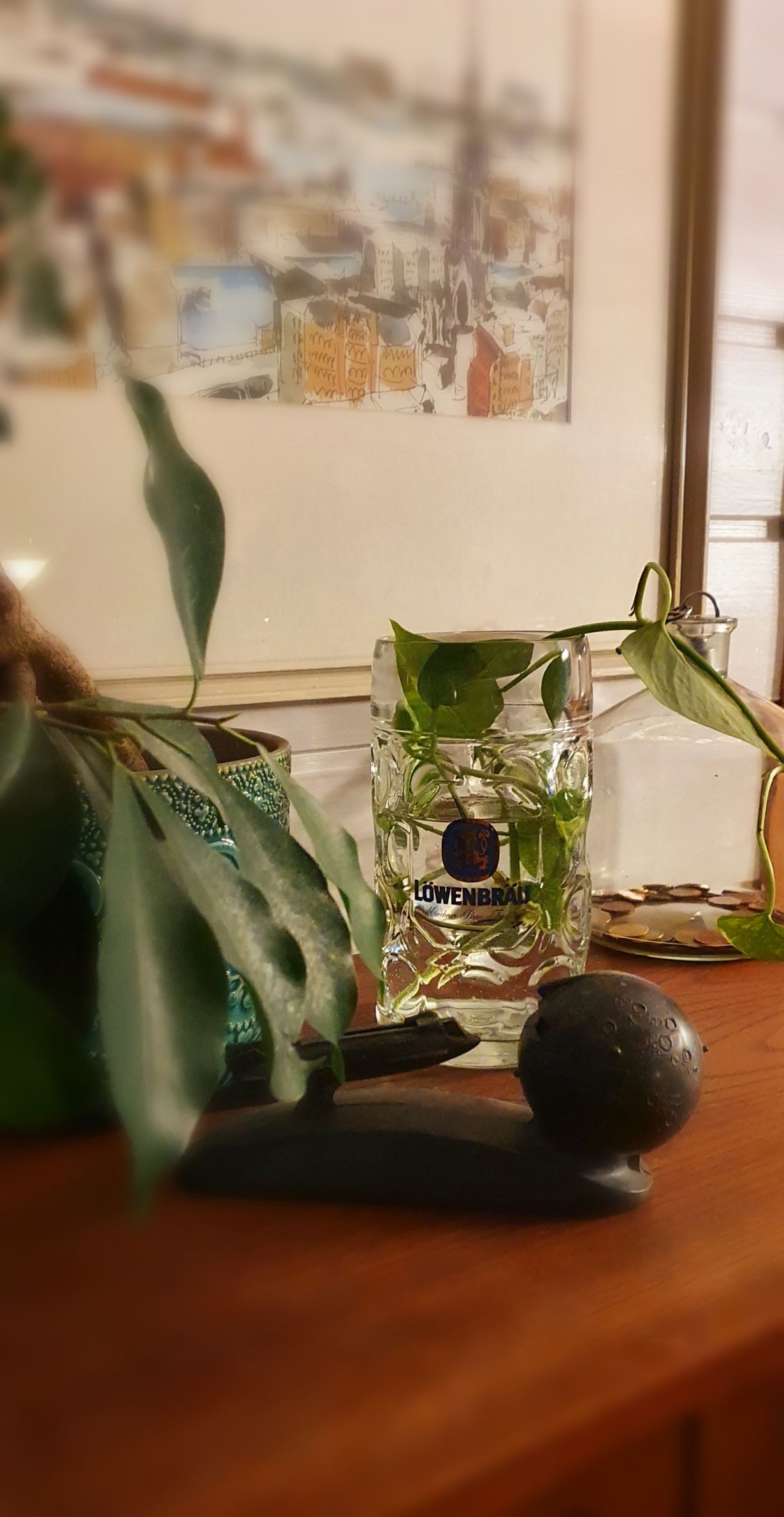 Tytär oli muutamia pistokkaita laittanut "tekeytymään" kevättä silmällä pitäen. Tuskin maltetaan odottaa, että saadaan pistää sormet multaan ja istuttaa näitä. Kultaköynnös baby🌱💚